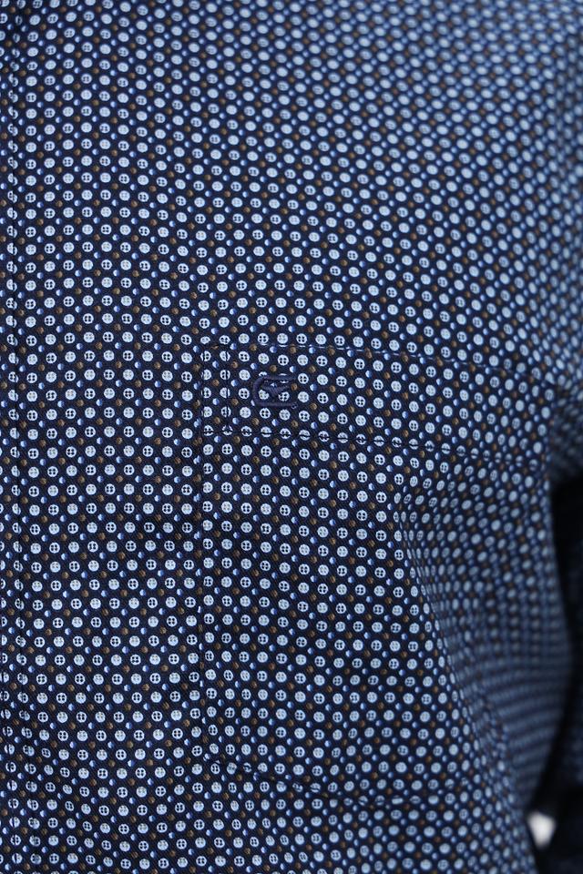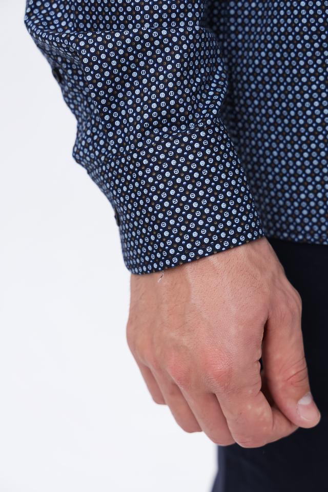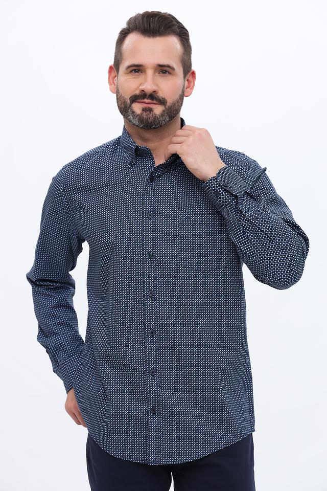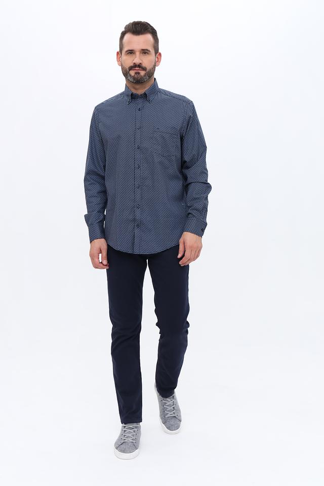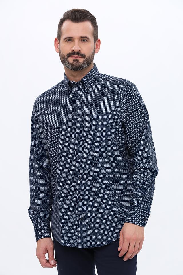 Мужская рубашка Casa Moda синего цвета с мелким геометрическим принтом. Классический крой и длинный рукав делают эту рубашку универсальным элементом гардероба. Изготовлена из 100% хлопка, обеспечивающего комфорт в носке. Состав: хлопок 100%