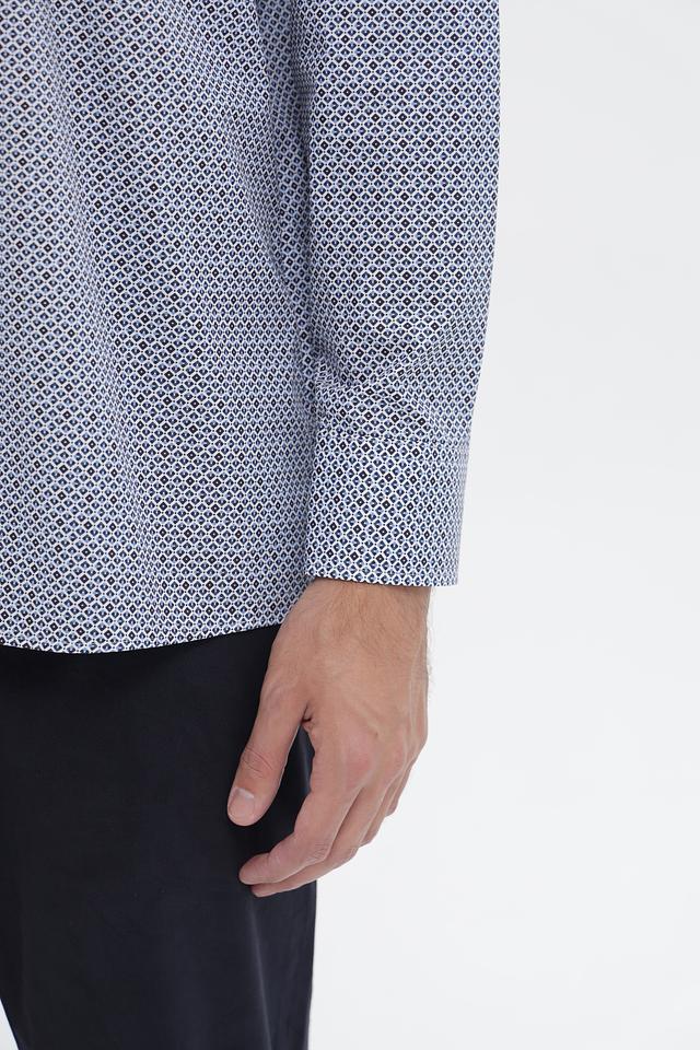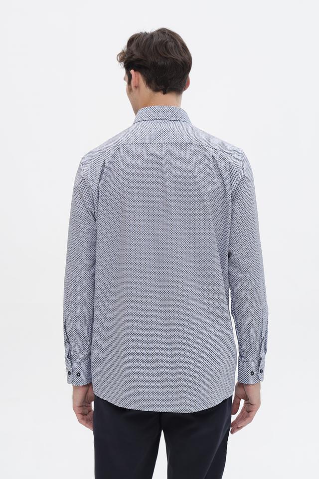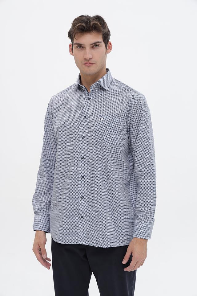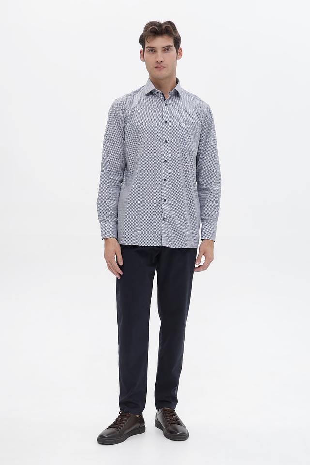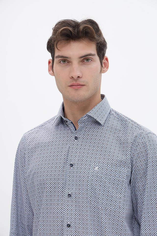 Мужская рубашка Casa Moda светло-серого цвета с геометрическим принтом. Изготовлена из 100% хлопка, обеспечивающего комфорт и воздухопроницаемость. Состав: хлопок 100%