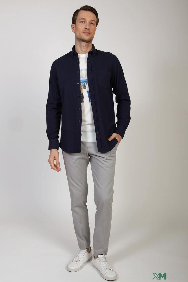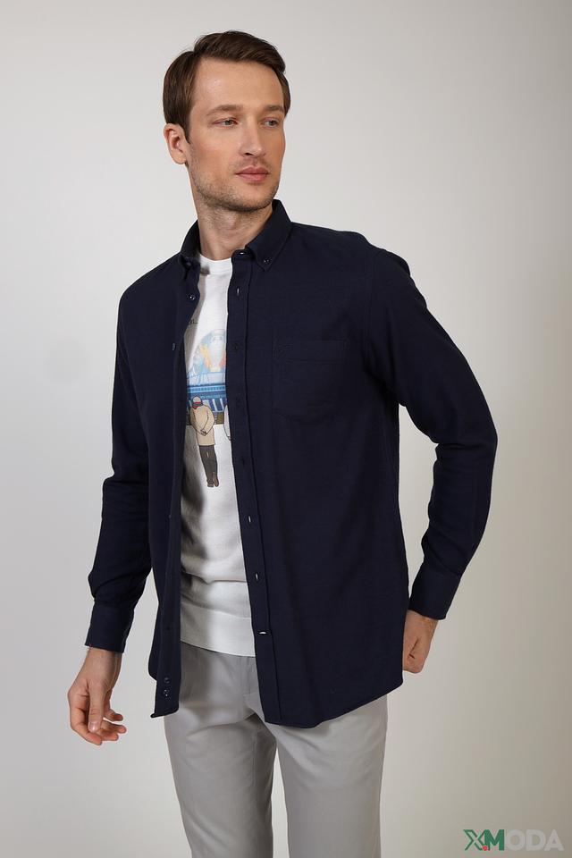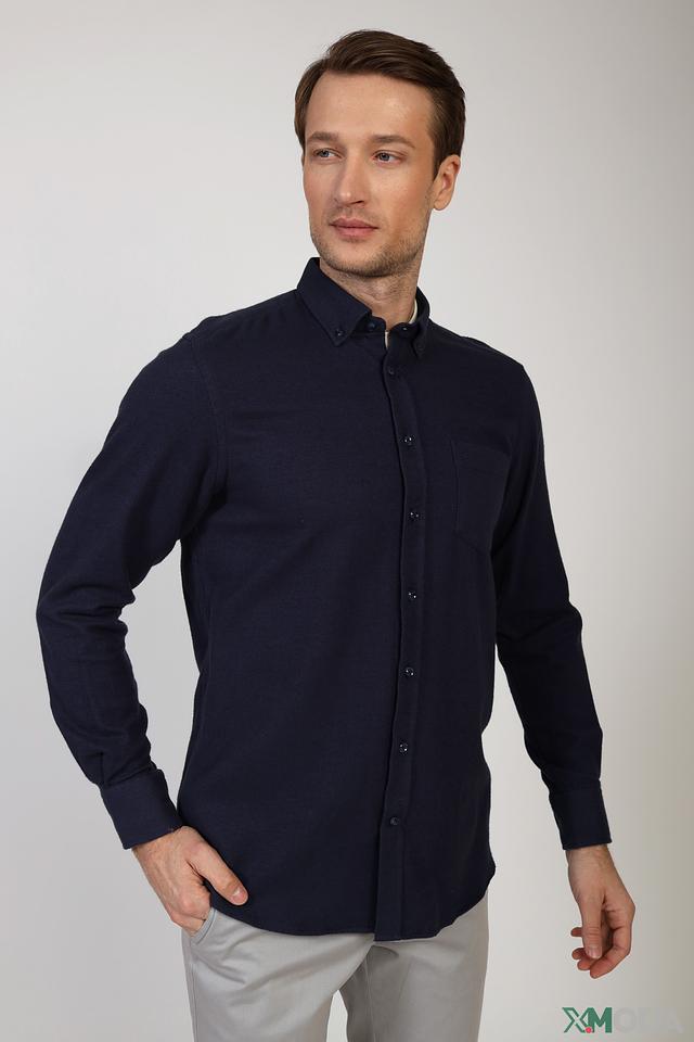 Мужская рубашка Granchio синего цвета с длинным рукавом и текстурированным узором. Изготовлена из полиэстера с добавлением полиамида, обеспечивающего комфорт и износостойкость. Отличный выбор для создания стильного повседневного образа. Состав: полиэстер 93%, полиамид 7%