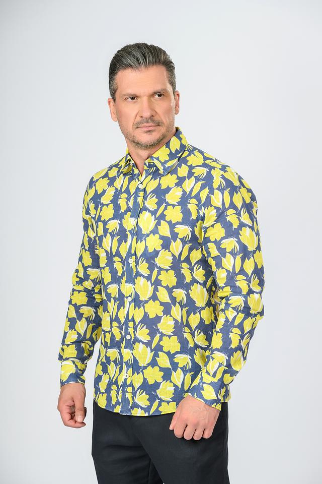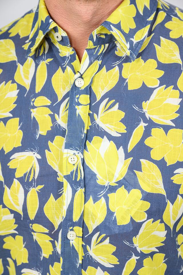 Эта рубашка от Joop! – отличный выбор для тех, кто ценит комфорт и стиль. Выполнена в синем цвете и украшена ярким принтом из жёлтых цветов, что придает ей оригинальность и свежесть.