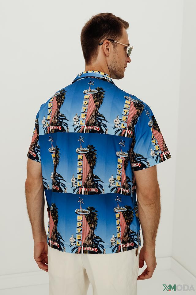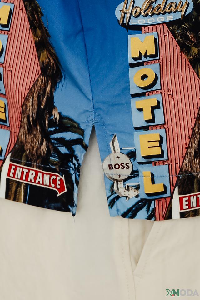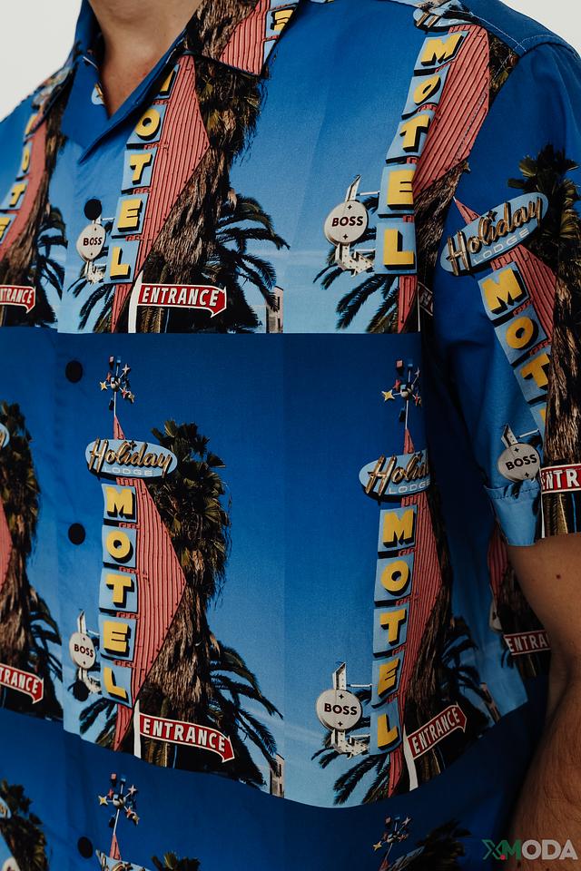 Эта рубашка от Boss Casual станет ярким акцентом в вашем гардеробе. Выполнена в насыщенном синем цвете и украшена оригинальным принтом с изображением пальм и неоновых вывесок в стиле ретро.