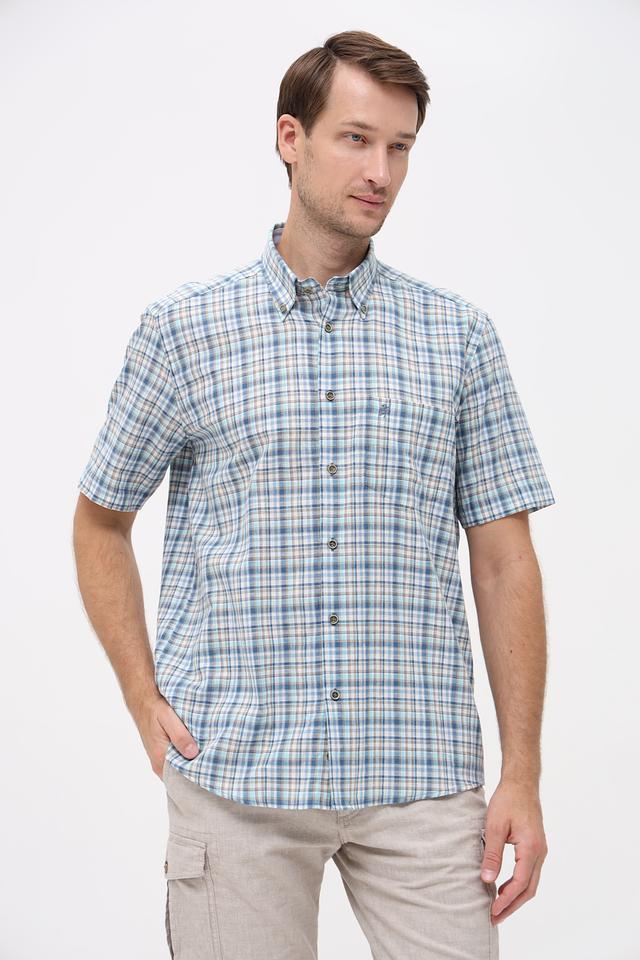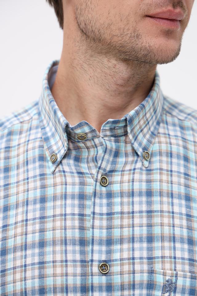 Мужская рубашка Sea Barrier голубого цвета в классическую клетку – отличный выбор для создания повседневного образа. Изготовлена из натурального смесового материала, обеспечивающего комфорт и воздухопроницаемость. Состав: лен 55%, хлопок 45%