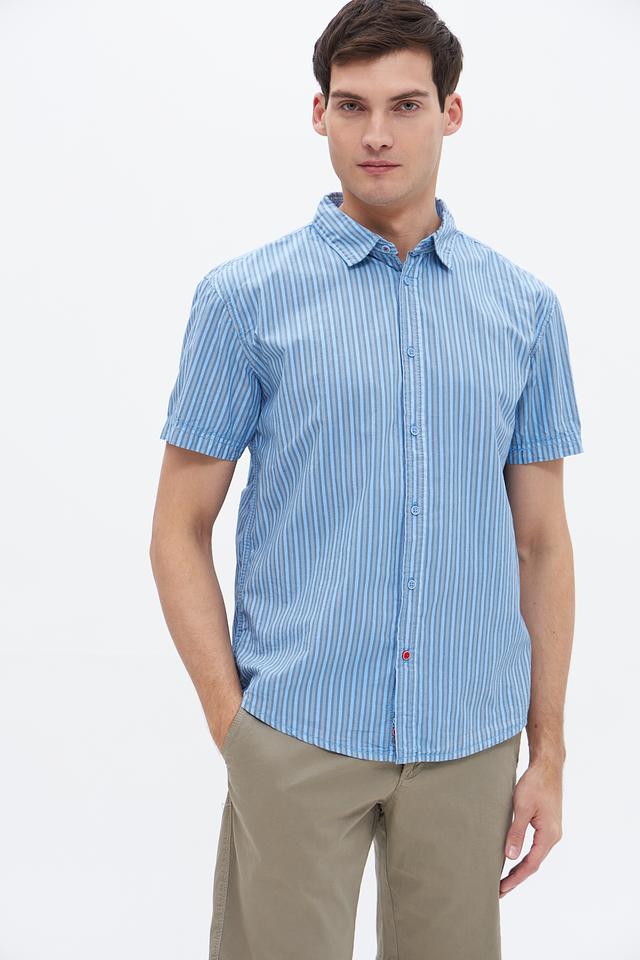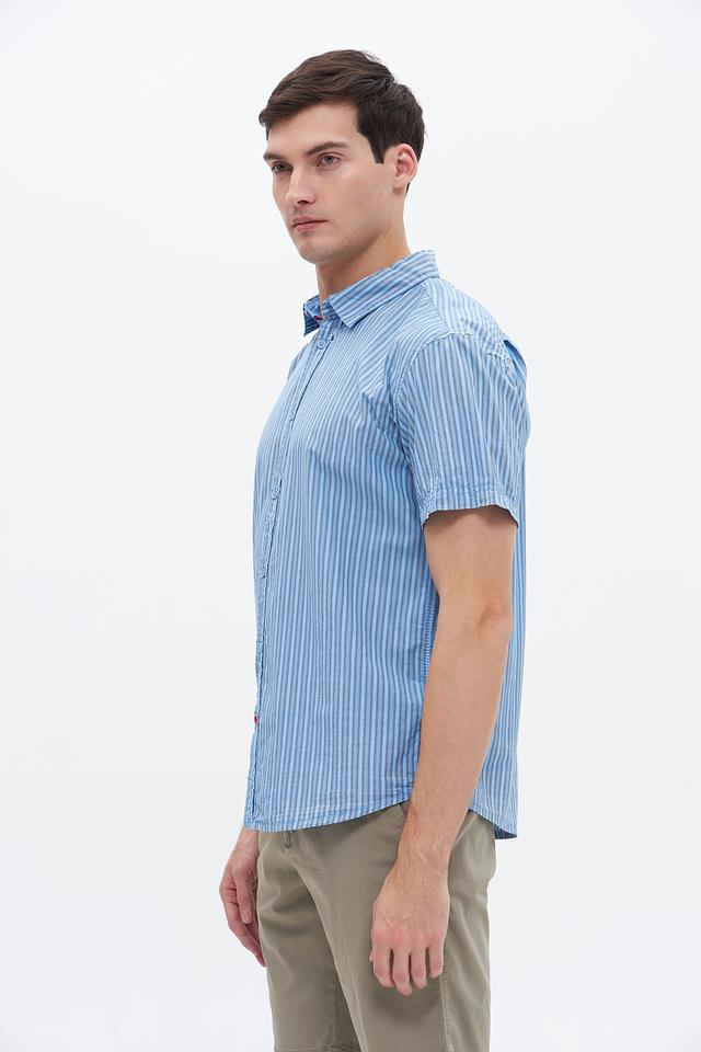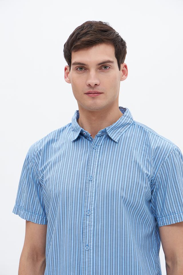 Мужская рубашка Time Zone голубого цвета с коротким рукавом и классическим кроем. Изготовлена из 100% хлопка, обеспечивающего комфорт и воздухопроницаемость. Отличный выбор для повседневного образа. Состав: хлопок 100%