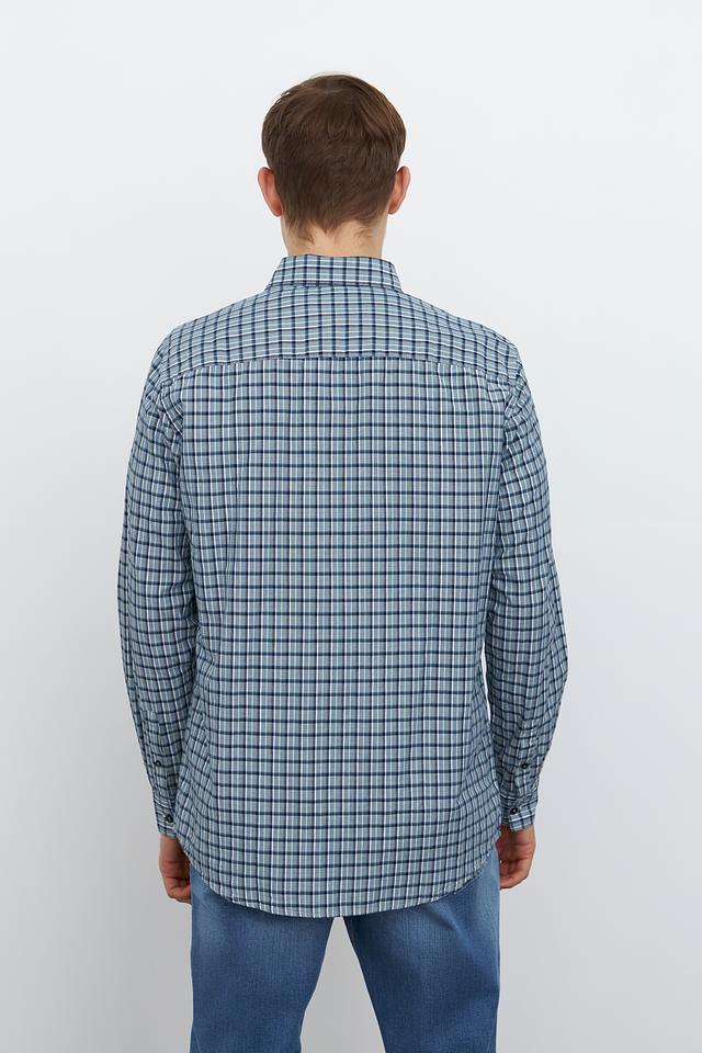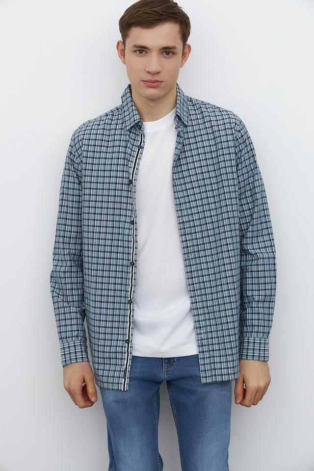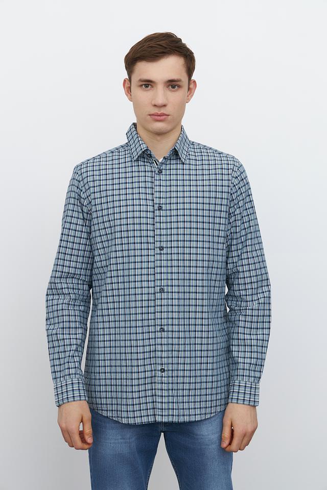 Мужская рубашка Tom Tailor сине-зелёного цвета в классическую клетку. Изготовлена из 100% хлопка, обеспечивающего комфорт и воздухопроницаемость. Состав: хлопок 100%