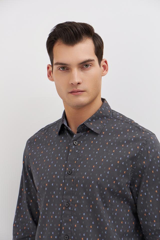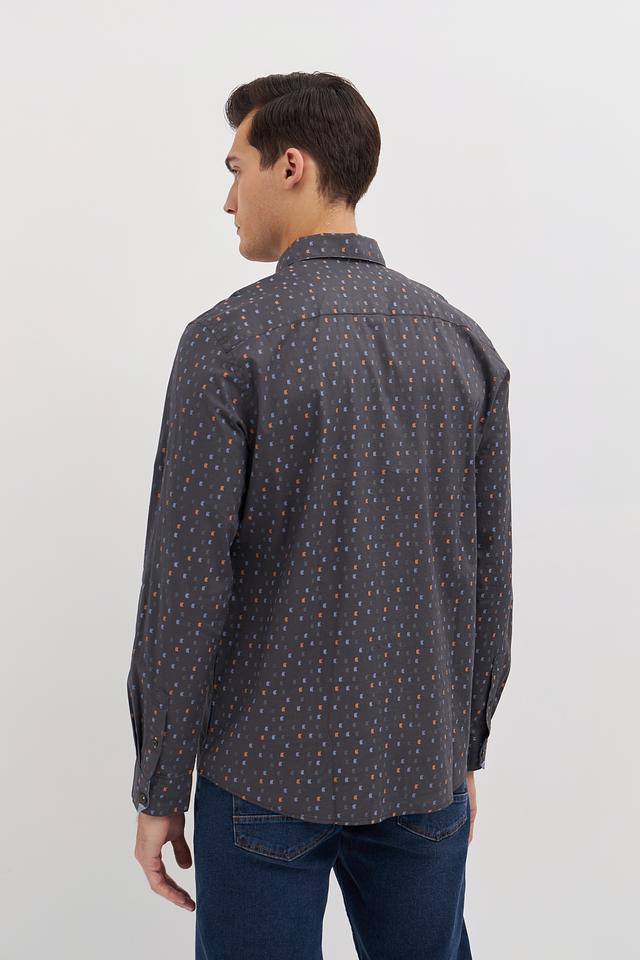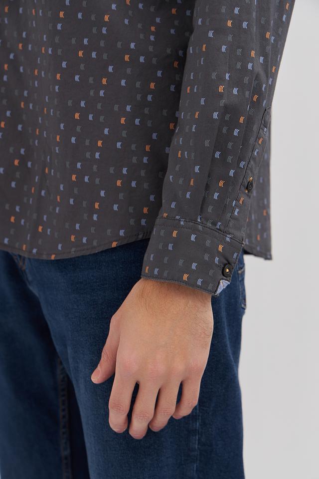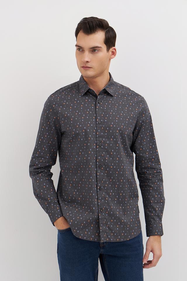 Эта рубашка от Tom Tailor станет отличным дополнением к вашему гардеробу. Выполнена в сером цвете с мелким геометрическим принтом, состоящим из оранжевых и голубых элементов.