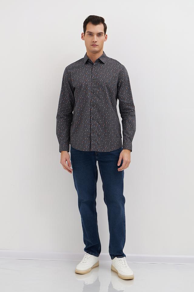 Мужская рубашка Tom Tailor серого цвета с оригинальным принтом. Изготовлена из 100% хлопка, обеспечивающего комфорт и воздухопроницаемость. Отличный выбор для создания стильного повседневного образа. Состав: хлопок 100%