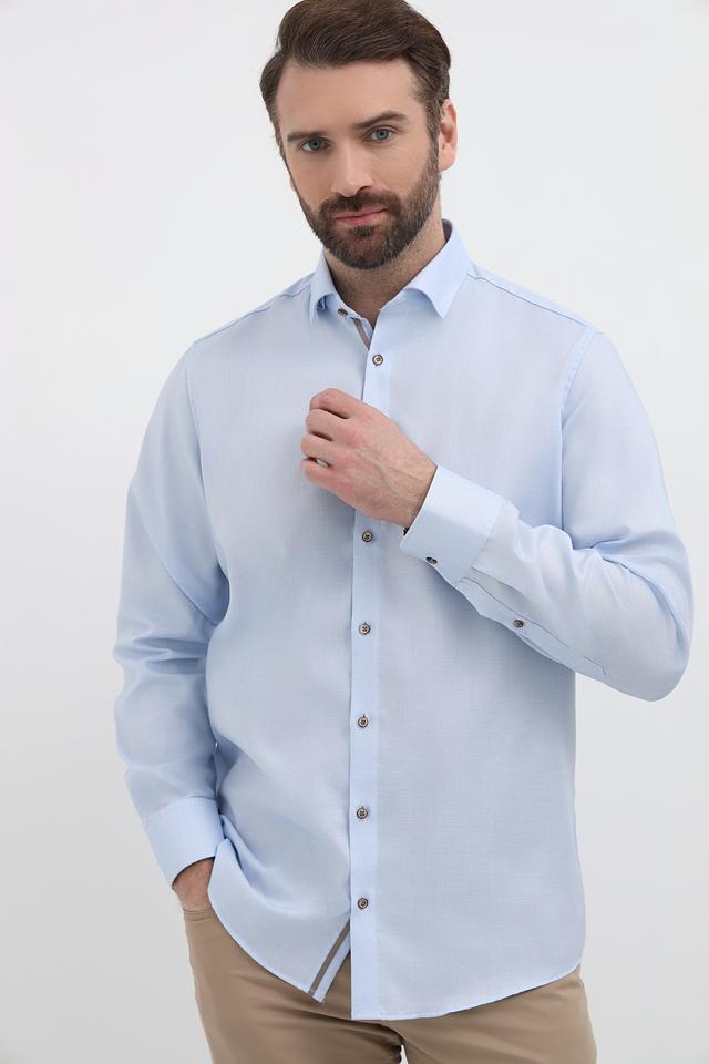 Мужская рубашка Venti голубого цвета, выполненная из 100% хлопка. Классический крой и приталенный силуэт делают эту рубашку универсальным дополнением к вашему гардеробу. Состав: хлопок 100%