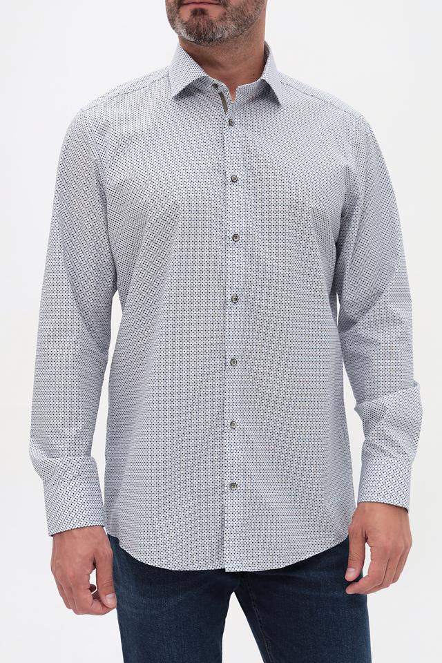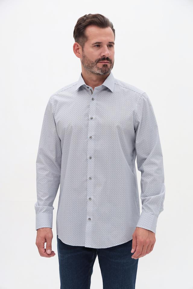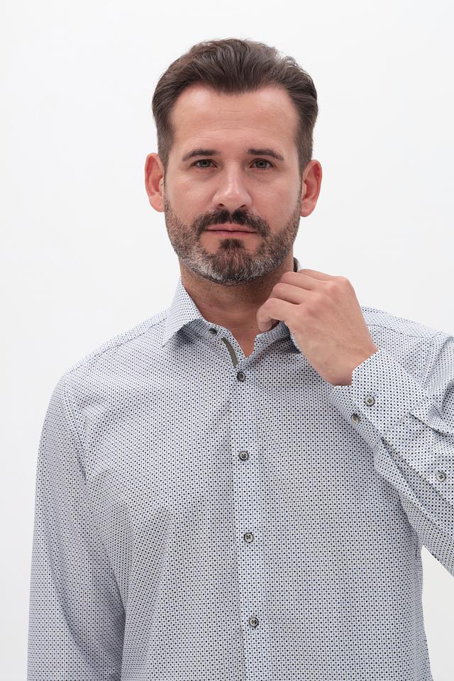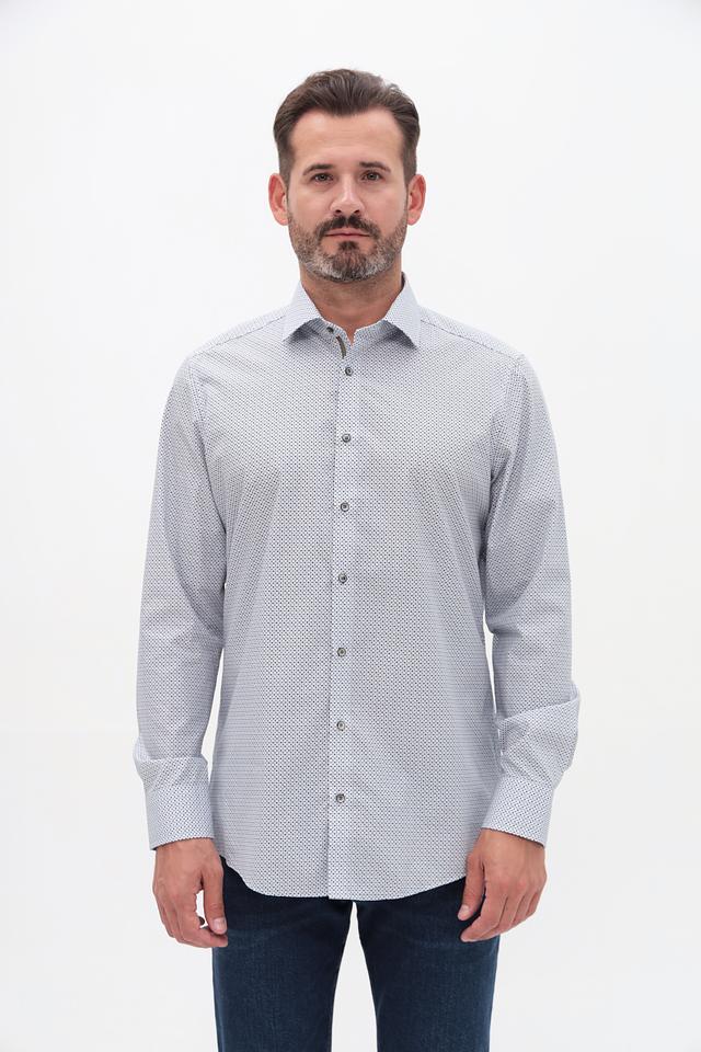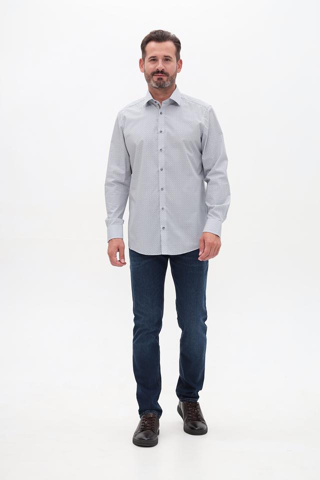 Мужская рубашка Venti светло-серого цвета с мелким геометрическим принтом. Классический крой и длинный рукав делают эту рубашку универсальным элементом гардероба. Изготовлена из 100% хлопка, обеспечивающего комфорт в носке. Состав: хлопок 100%