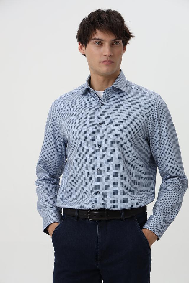 Мужская рубашка Venti голубого цвета с мелким рисунком в клетку — это стильное и универсальное решение для любого гардероба. Классический крой и приталенный силуэт (modern fit) обеспечивают комфортную посадку по фигуре.