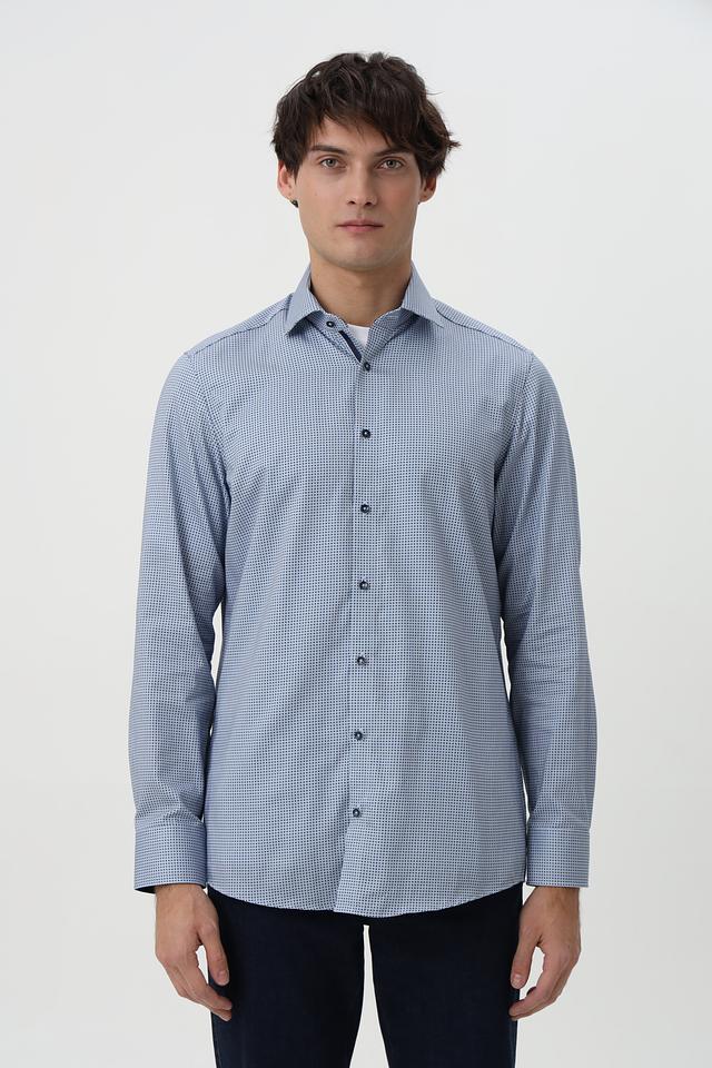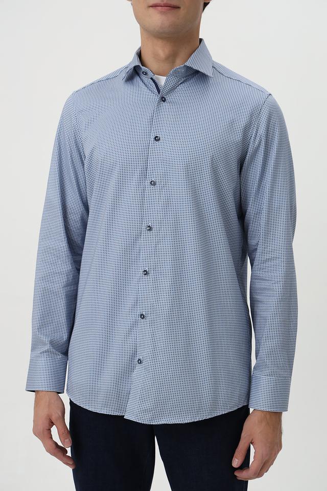 Рубашка Venti голубого цвета с мелким рисунком в клетку. Изготовлена из 100% хлопка, обеспечивающего комфорт и воздухопроницаемость. Идеально подходит для создания повседневного и делового образа. Состав: хлопок 100%