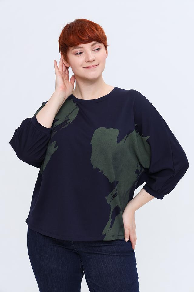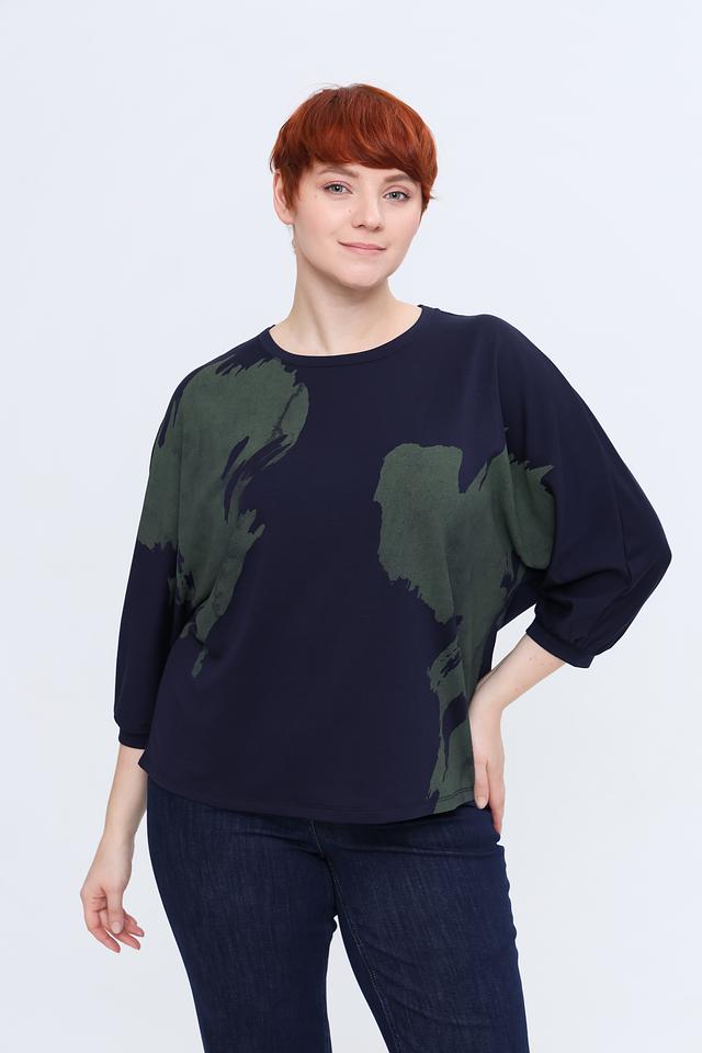 Джемпер Samoon тёмно-синего цвета с оригинальным принтом в виде мазков оливкового оттенка станет стильным дополнением к вашему гардеробу. Модель выполнена из мягкого и приятного к телу трикотажа, обеспечивающего комфорт в носке. Состав: полиэстер 68%, вискоза 29%, эластан 3%
