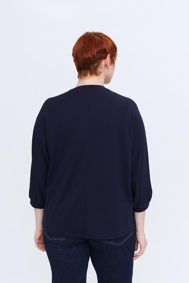 Джемпер имеет свободный крой и рукава 3/4 с небольшим буфом, что делает его удобным и стильным. Он прекрасно сочетается с джинсами, брюками или юбками, позволяя создавать разнообразные образы. Состав ткани обеспечивает хорошую посадку и лёгкость в уходе.