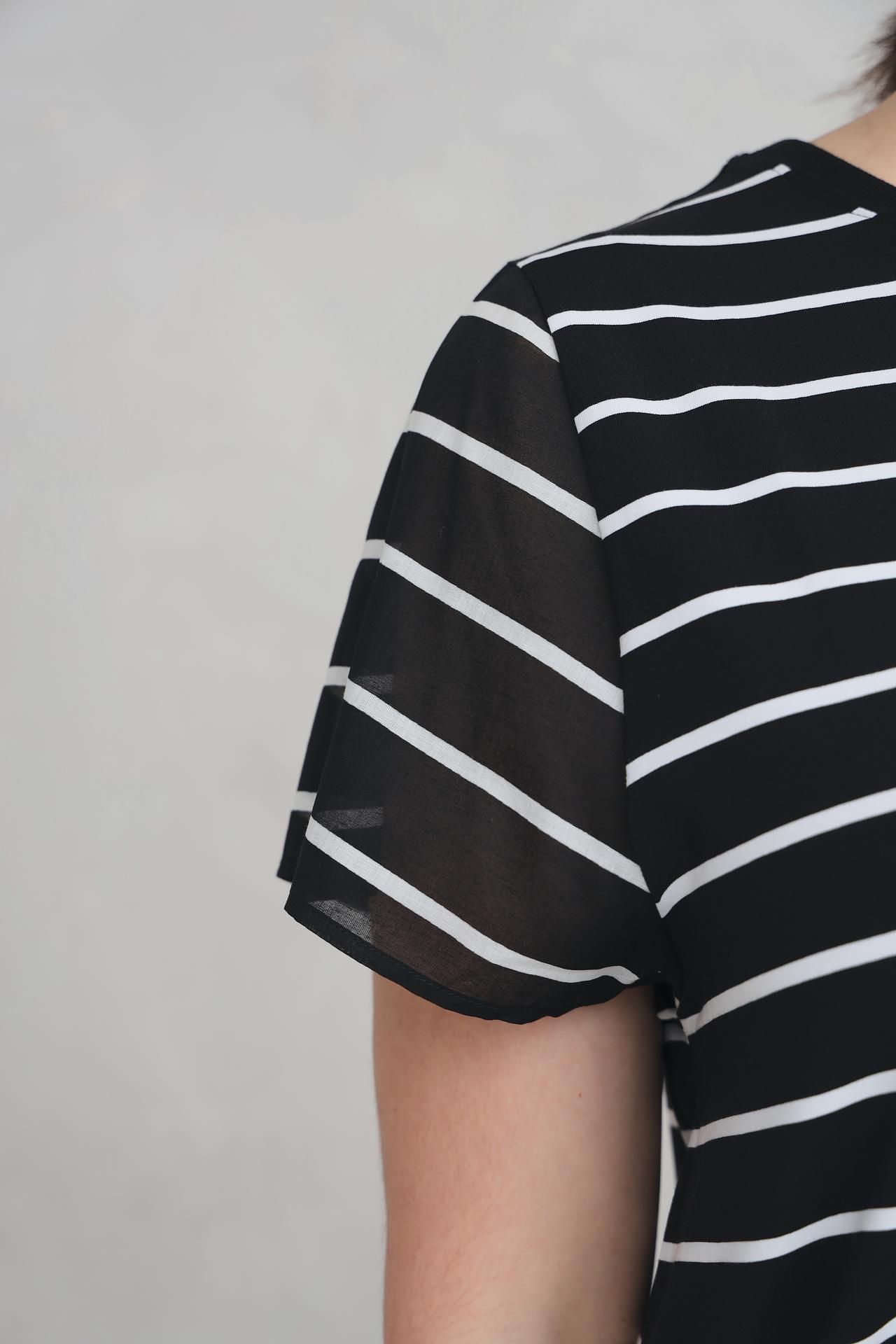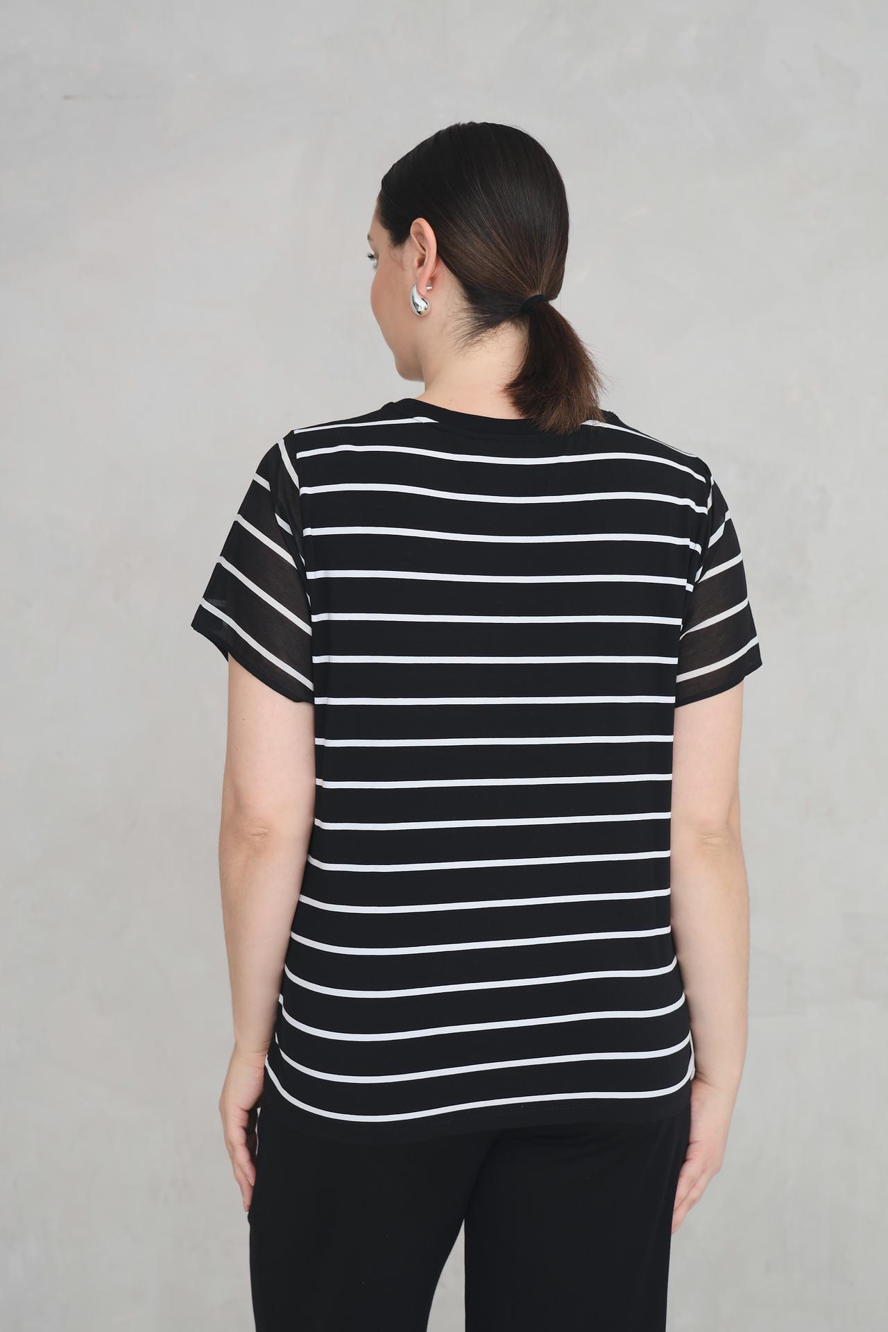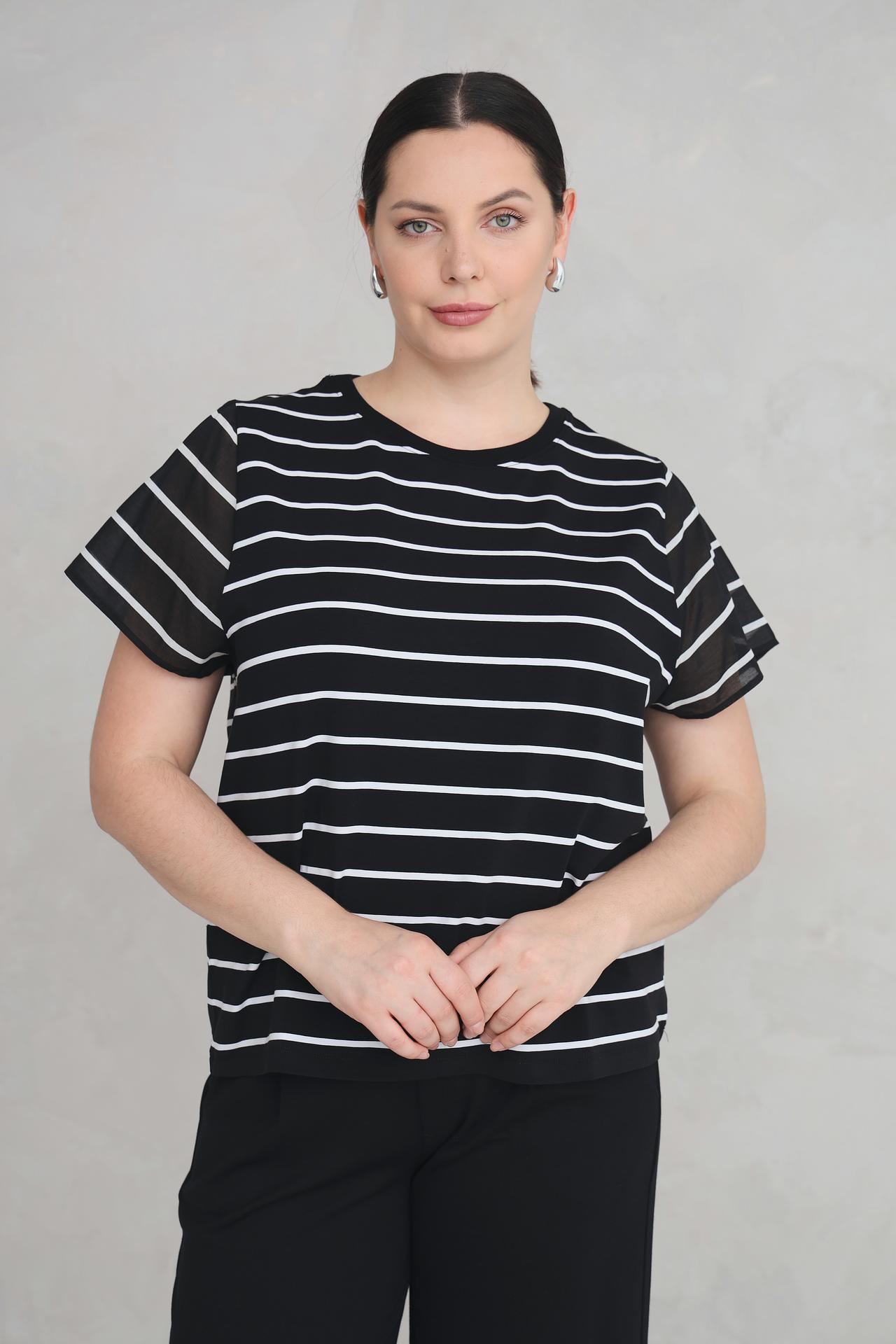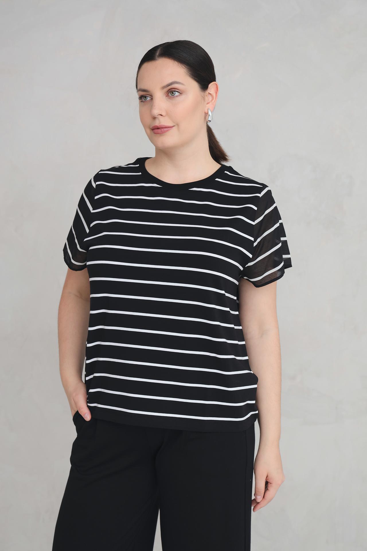 Элегантная футболка в классическую черно-белую полоску от Samoon – идеальный выбор для создания стильных и комфортных образов.