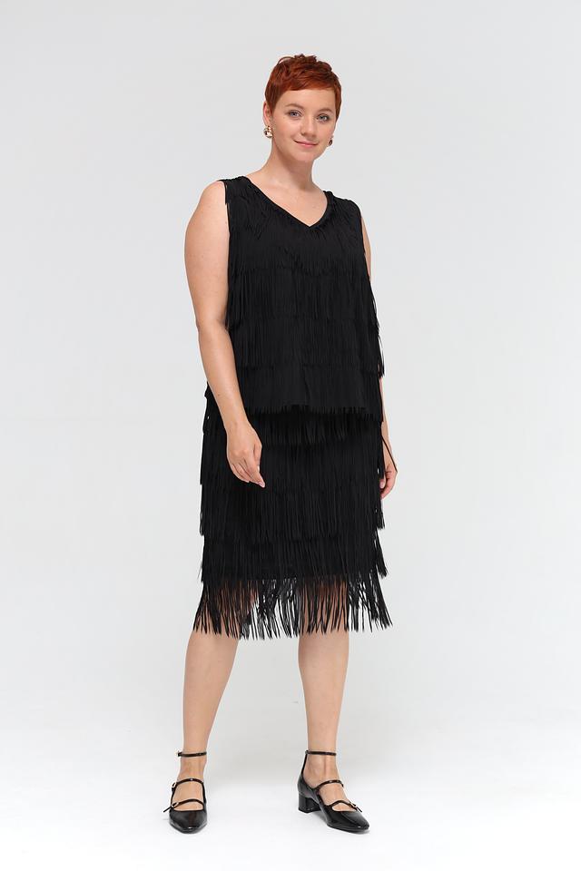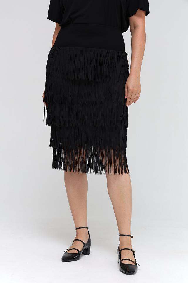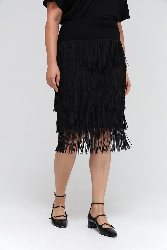 Чёрная юбка Samoon с многослойной бахромой. Изготовлена из полиэстера с подкладкой из вискозы и эластана, обеспечивающей комфорт и удобство в носке. Состав: полиэстер 95%, Состав_подкладка вискоза 95%, эластан 5%, Состав_подкладка эластан 5%