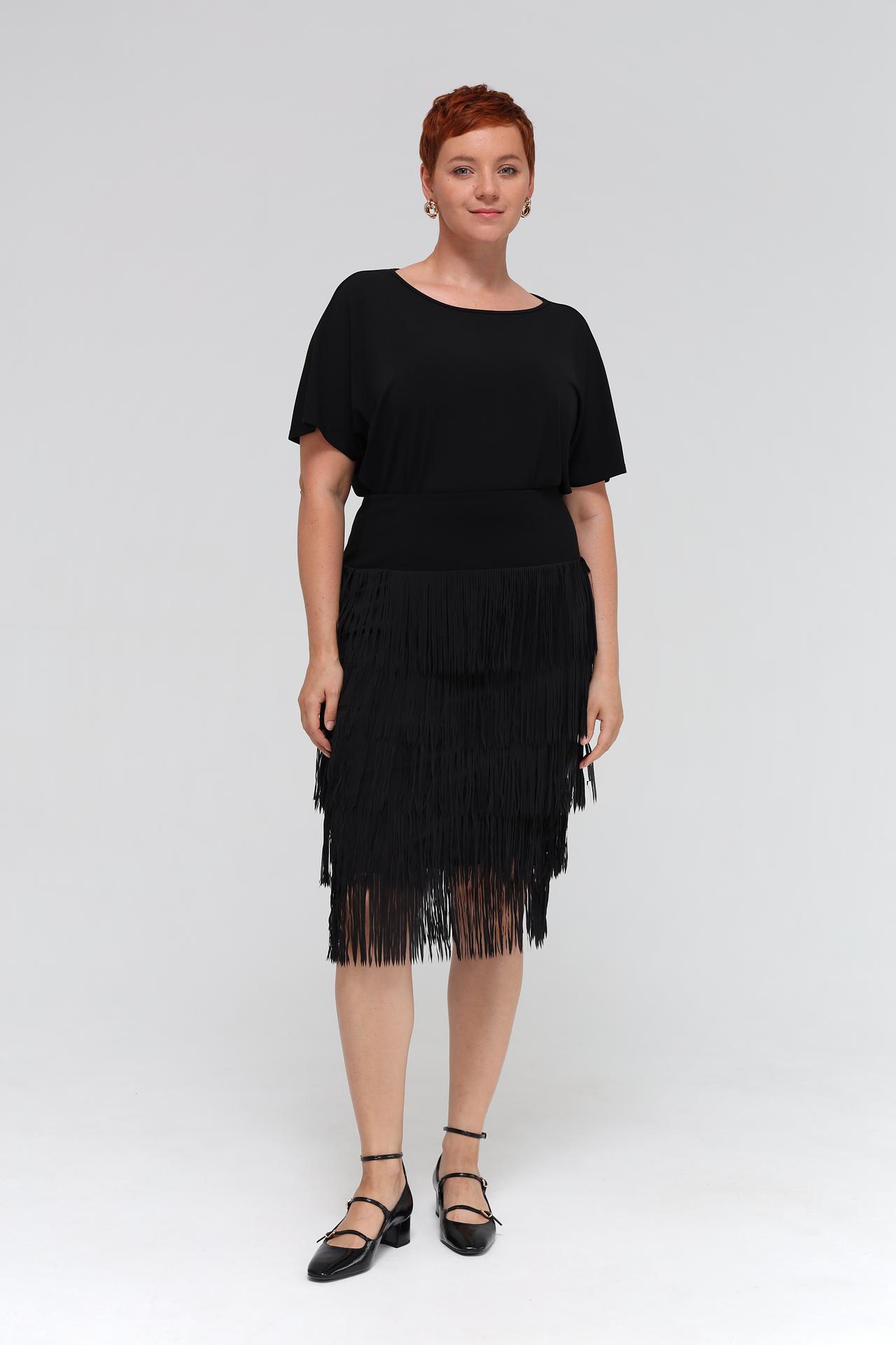 - Дизайн: Многоярусная бахрома создает эффектный вид и добавляет образу игривости. Классический черный цвет универсален и легко сочетается с другими элементами гардероба.
