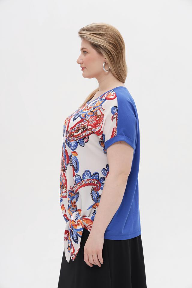Блузка Samoon с ярким цветочным принтом и завязками на талии. Изготовлена из мягкого и приятного к телу сочетания хлопка, модала и эластана. Состав: хлопок 47%, модал 47%, эластан 6%