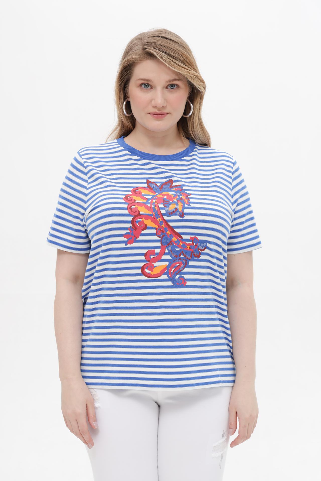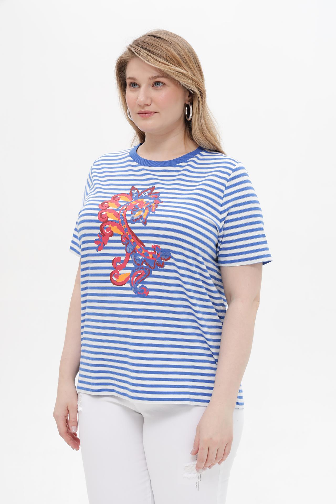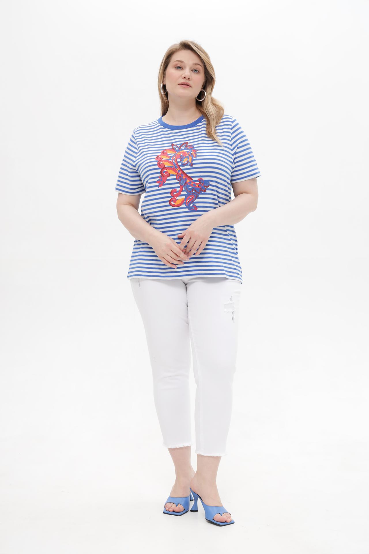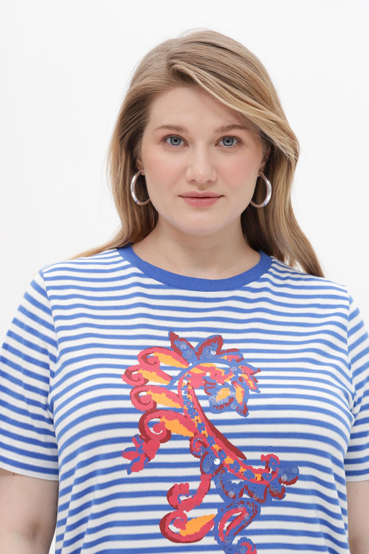 - Яркий дизайн. Полосатый принт и оригинальный рисунок делают эту футболку стильным акцентом в вашем образе.