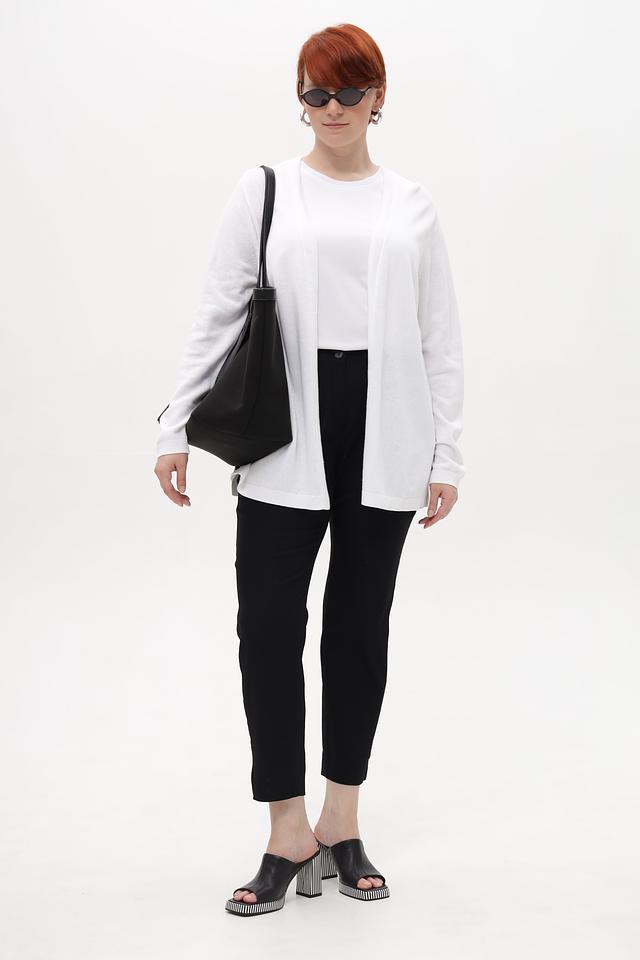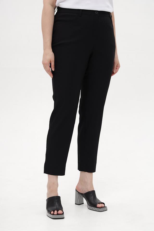 Брюки имеют классический крой, высокую посадку и укороченную длину. Пояс выполнен на резинке для обеспечения максимального комфорта. Боковые карманы добавляют функциональности.
