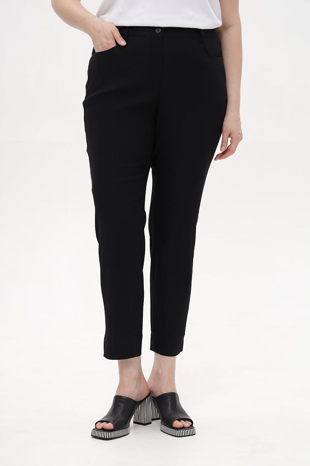 Представляем классические брюки от бренда Samoon. Эта модель выполнена в лаконичном черном цвете, что делает ее универсальной основой для любого гардероба.