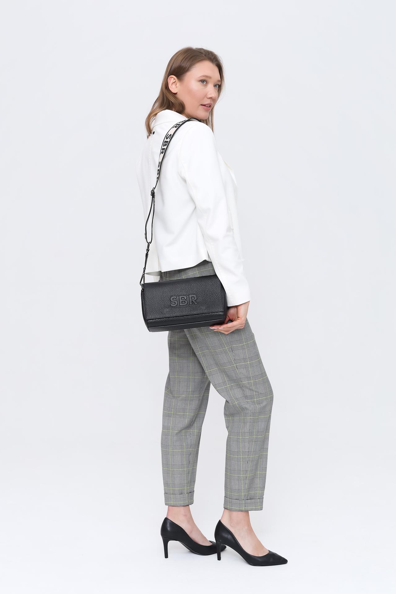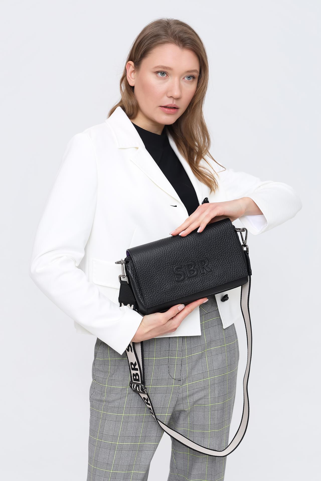 - Дизайн: Классическая форма сумки-кроссбоди дополнена стильным широким ремнем с логотипом бренда, а также элегантным тиснением SBR на передней панели. Это делает модель узнаваемой и модной.