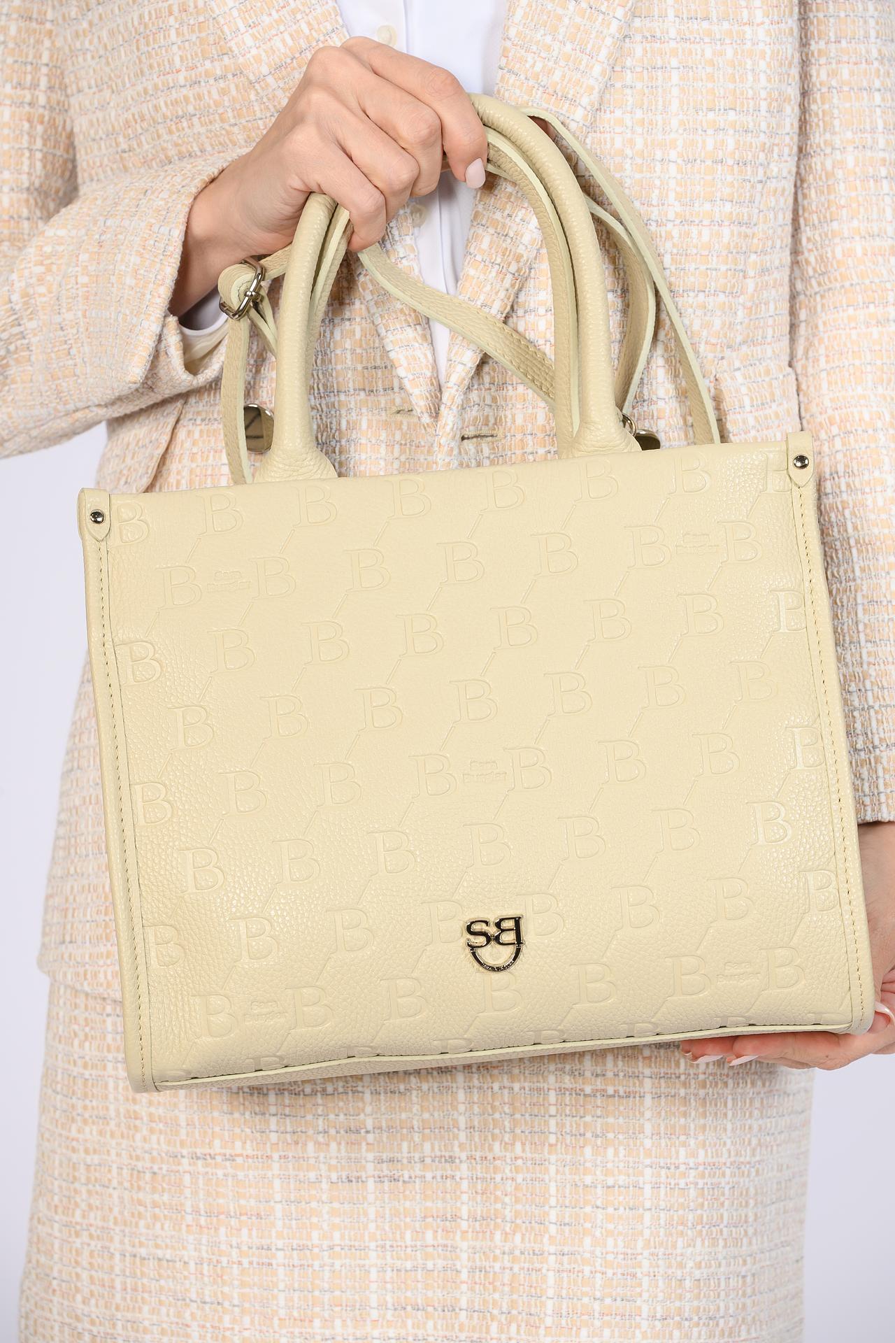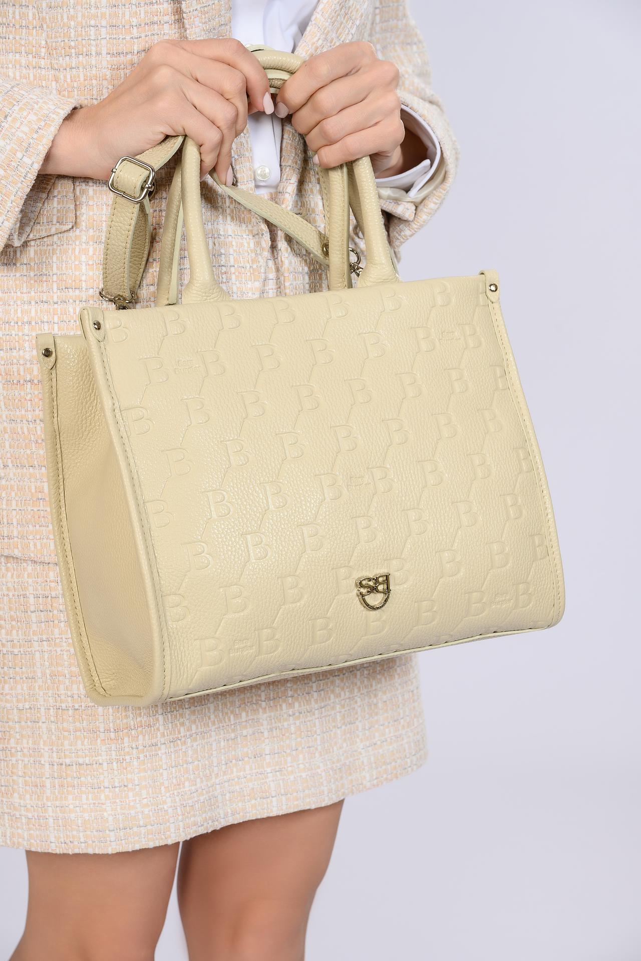 - Универсальный дизайн: Бежевый цвет и тисненый логотип легко сочетаются с различными стилями одежды, делая эту сумку универсальным аксессуаром.