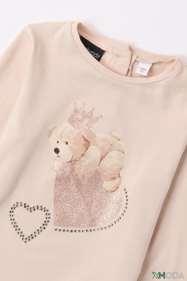 Бежевый джемпер от Sarabanda для девочки с очаровательным принтом мишки. Изготовлен из мягкого хлопка с добавлением эластана для комфорта и свободы движений. Прекрасный выбор для повседневной носки. Состав: хлопок 95%, эластан 5%