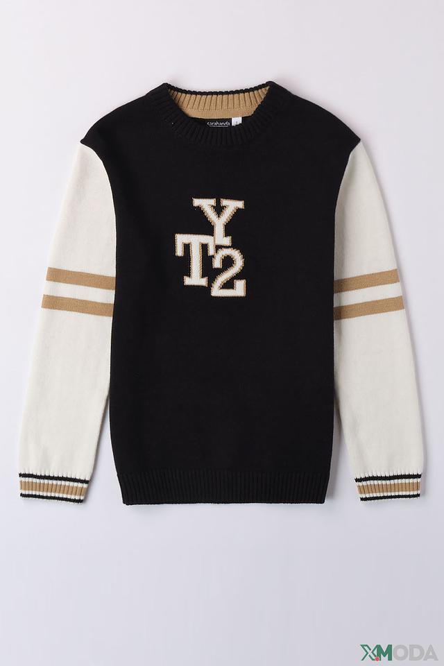 Чёрный джемпер от Sarabanda с оригинальным белым логотипом – стильный выбор для мальчика. Модель выполнена из мягкого и приятного к телу сочетания хлопка и шерсти, обеспечивая комфорт и тепло. Состав: хлопок 80%, шерсть 20%