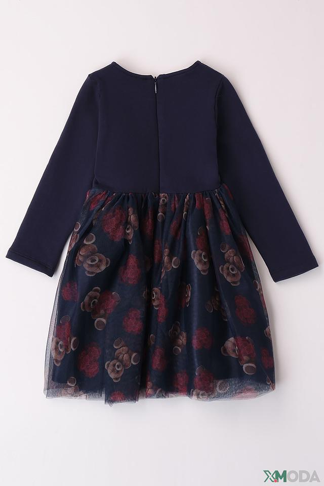 Верх платья выполнен из мягкого трикотажа, обеспечивающего комфорт в носке. Длинные рукава делают платье подходящим для прохладной погоды. Застежка-молния на спинке облегчает процесс одевания и раздевания.