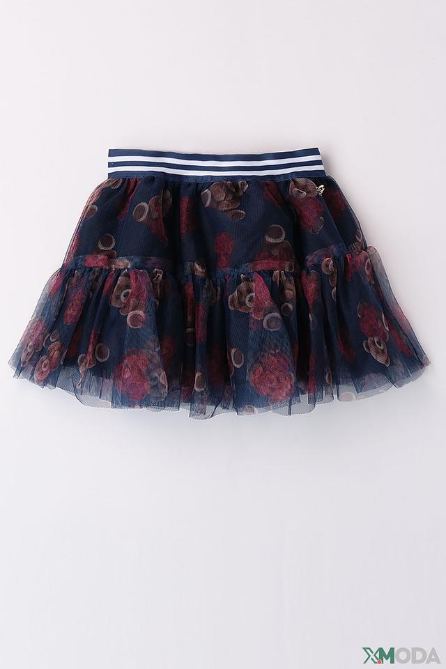 Детская юбка Sarabanda темно-синего цвета, украшена цветочным принтом и эластичным поясом. Модель выполнена из легкого полиэстера и идеально подходит для создания нарядного образа. Состав: полиэстер 100%
