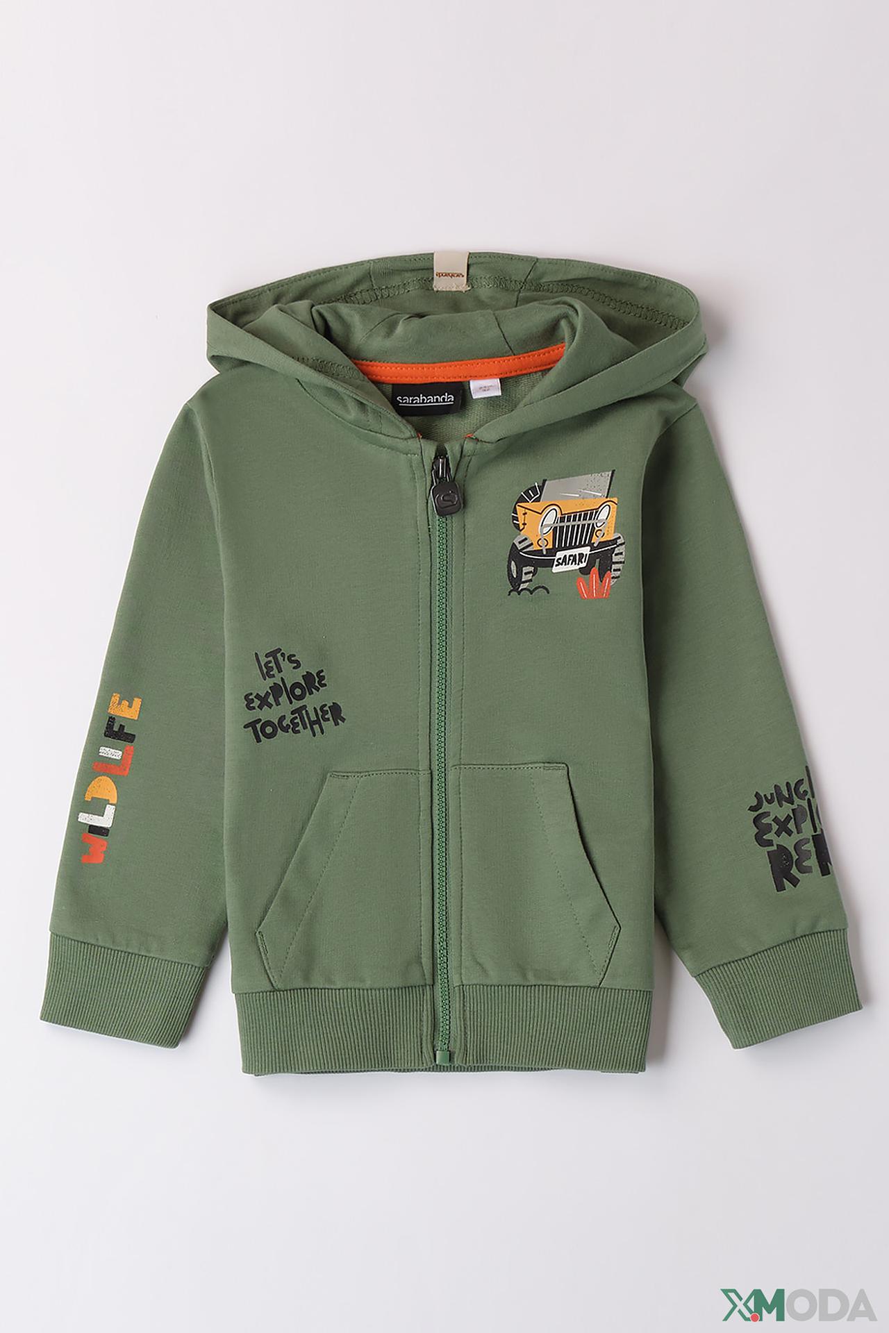 Джемпер Sarabanda на молнии цвета хаки с принтом
