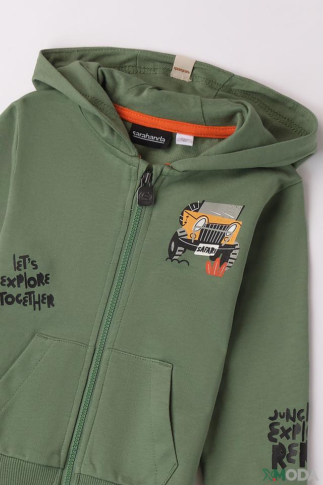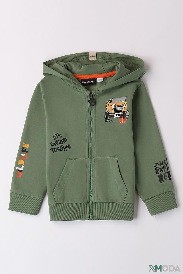 Зелёный джемпер Sarabanda с ярким принтом сафари станет отличным выбором для активного мальчика. Удобный крой и мягкий хлопок обеспечат комфорт в течение дня. Застёжка-молния позволяет легко надевать и снимать джемпер. Состав: хлопок 100%