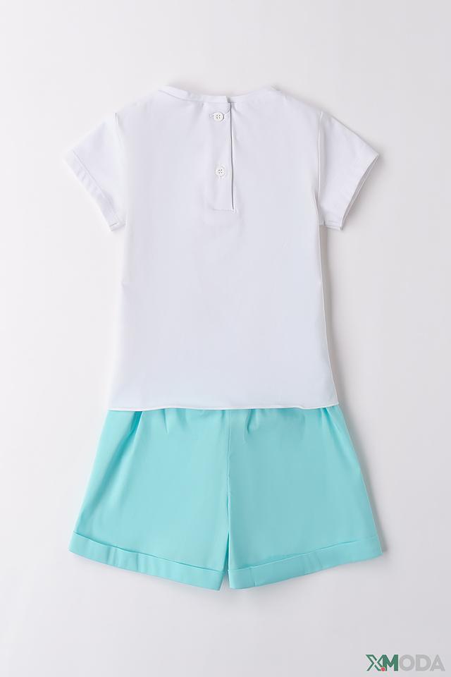 Этот очаровательный комплект от Sarabanda станет отличным выбором для маленьких модниц. Комплект состоит из футболки и шорт, выполненных в нежной цветовой гамме.