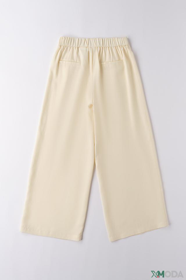 Брюки имеют удобный эластичный пояс, обеспечивающий комфортную посадку и свободу движений. Складки на передней части брюк придают им аккуратный и стильный вид. Кюлоты выполнены из высококачественного материала, что гарантирует их долговечность и приятные тактильные ощущения.