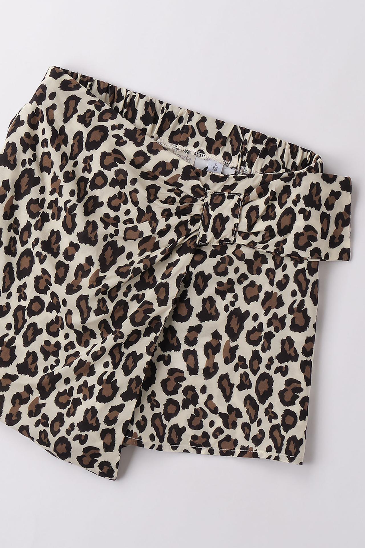 - Модный дизайн: Стильный леопардовый принт и имитация запаха спереди делают эти шорты трендовой деталью детского гардероба.