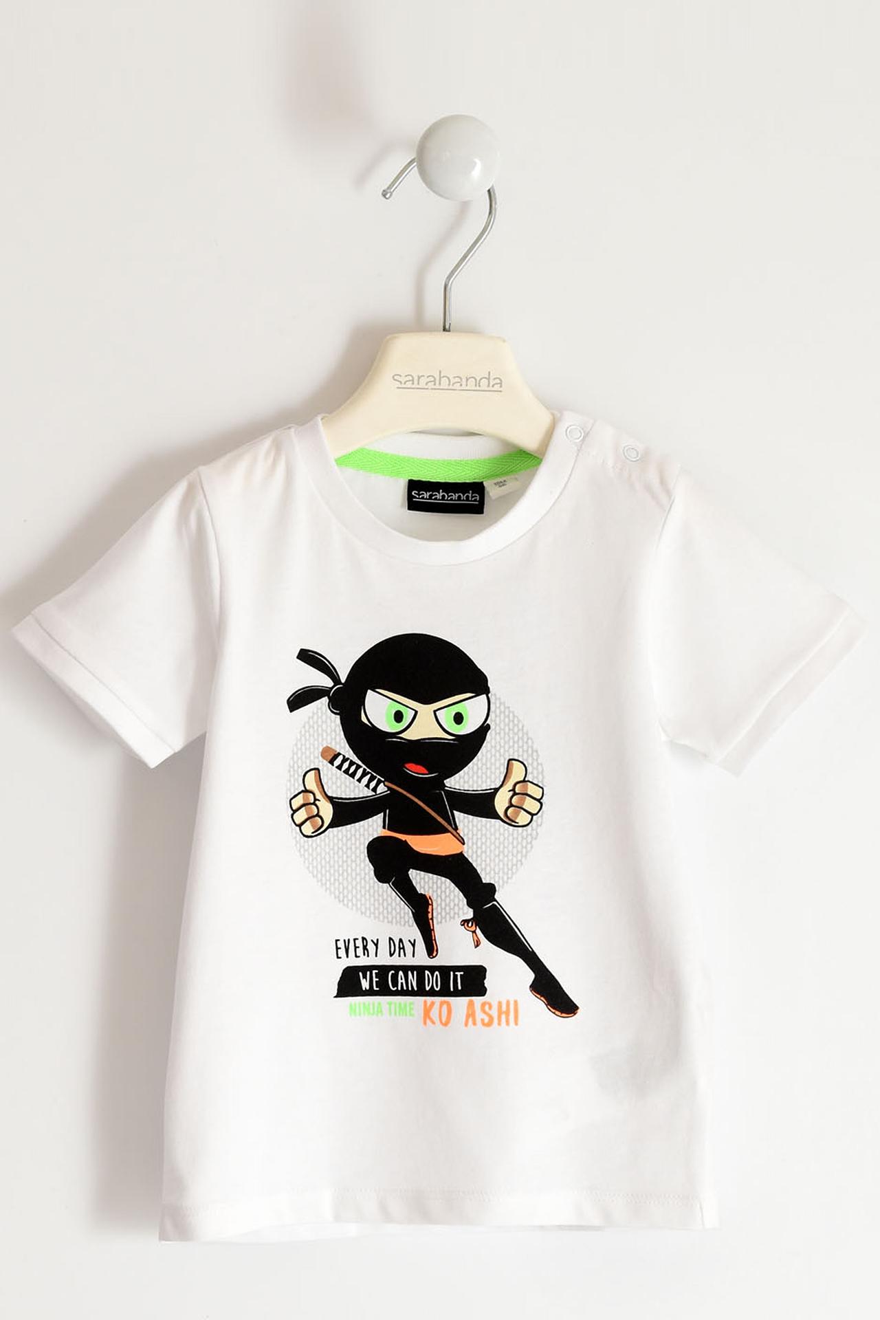 Футболка Sarabanda белая с принтом ниндзя для мальчика