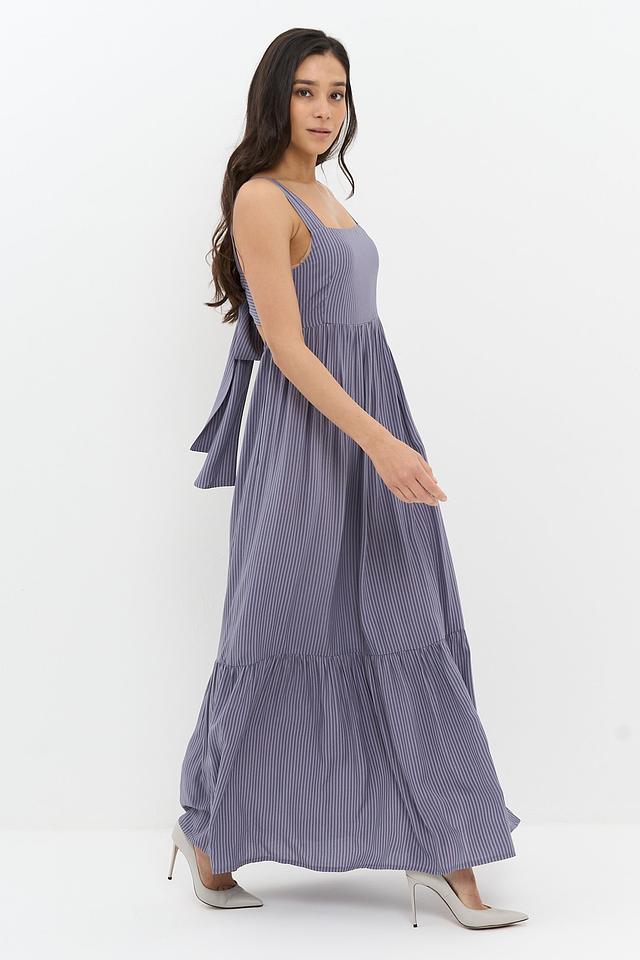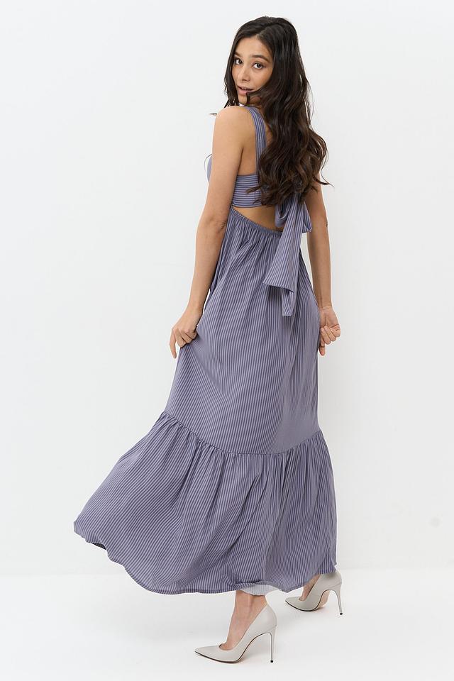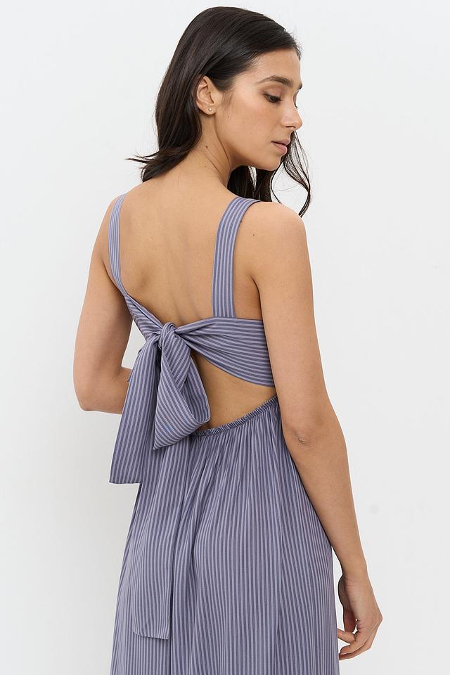 Длинное платье BE YOU синего цвета в вертикальную полоску. Модель с тонкими бретелями и открытой спиной, дополненной завязками. Идеальный выбор для создания летнего образа. Состав: