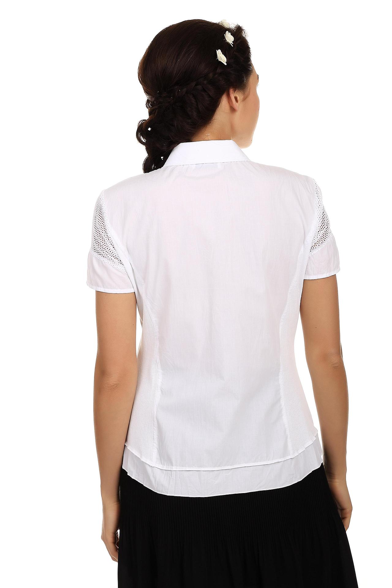 - Крой. Классический крой с короткими рукавами и воротником. Блузка подчеркивает достоинства фигуры и подходит для любого типа телосложения.