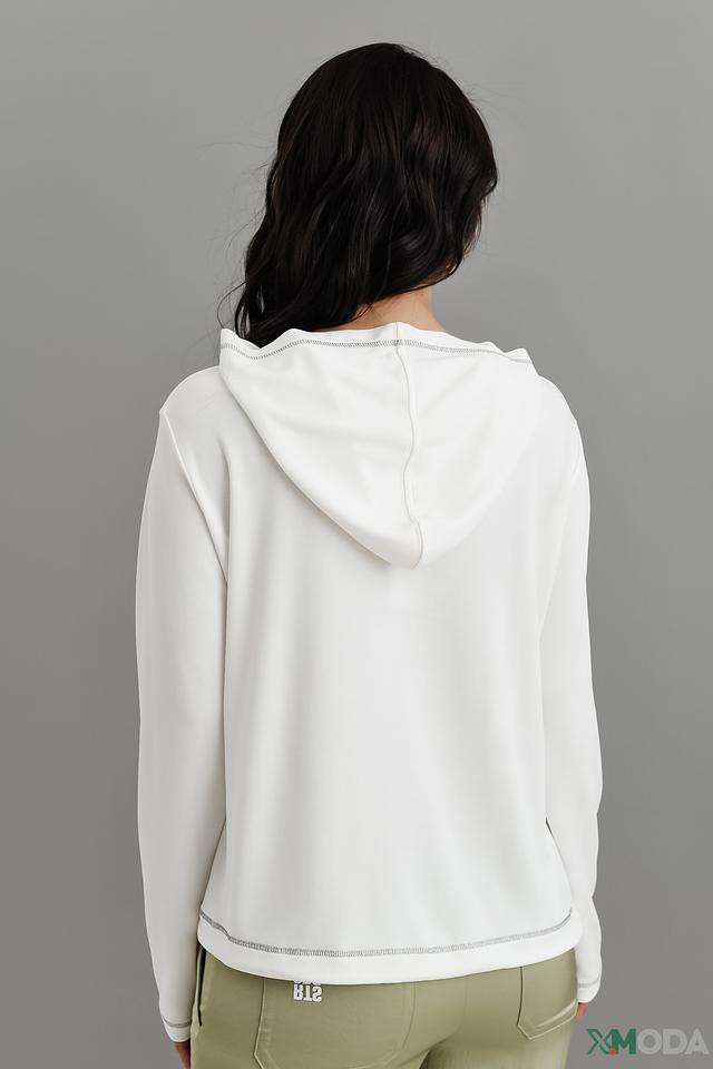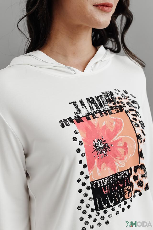 Модель имеет удобный крой, длинные рукава и капюшон. Лонгслив изготовлен из высококачественного модала (70%) и полиэстера (30%), что обеспечивает приятные тактильные ощущения, мягкость и долговечность изделия.