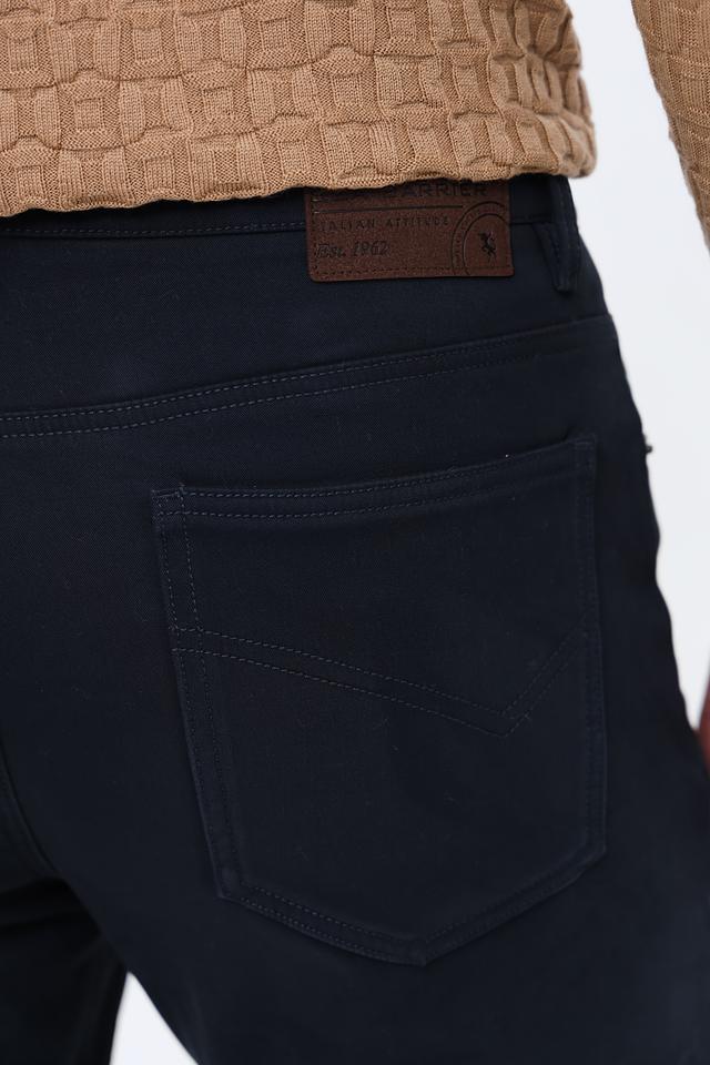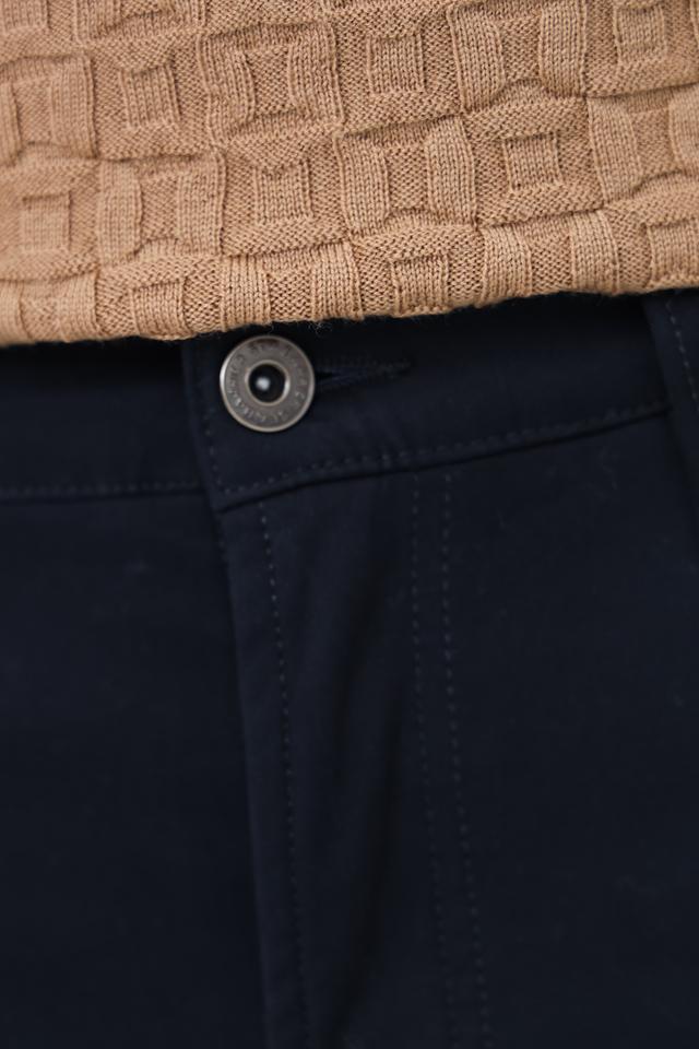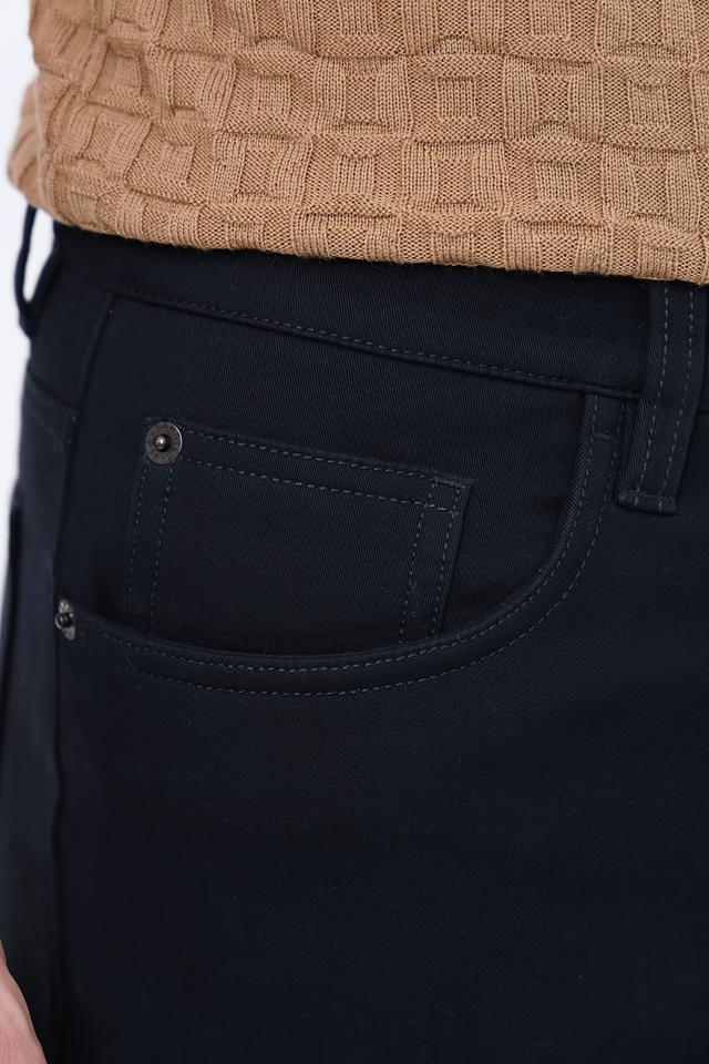 Цвет брюк – насыщенный темно-синий, который легко сочетается с различными элементами гардероба. Застежка на молнию и пуговицу обеспечивает надежную фиксацию. На задних карманах расположены декоративные элементы. Данная модель станет отличным дополнением к вашему образу и подчеркнет ваш безупречный вкус.