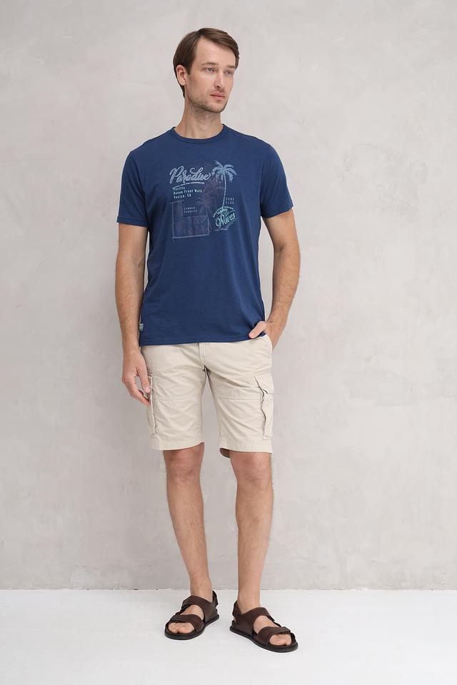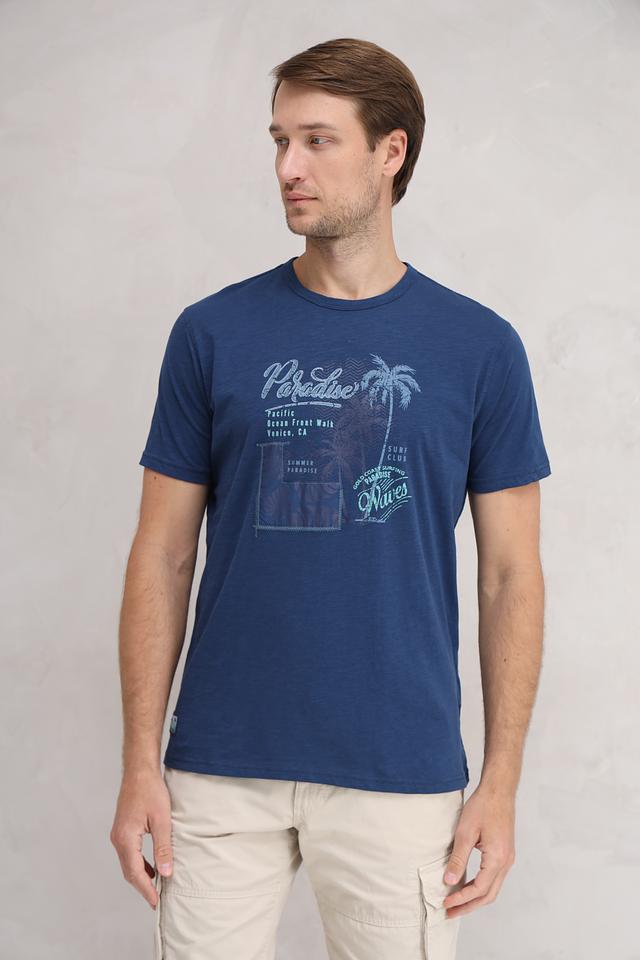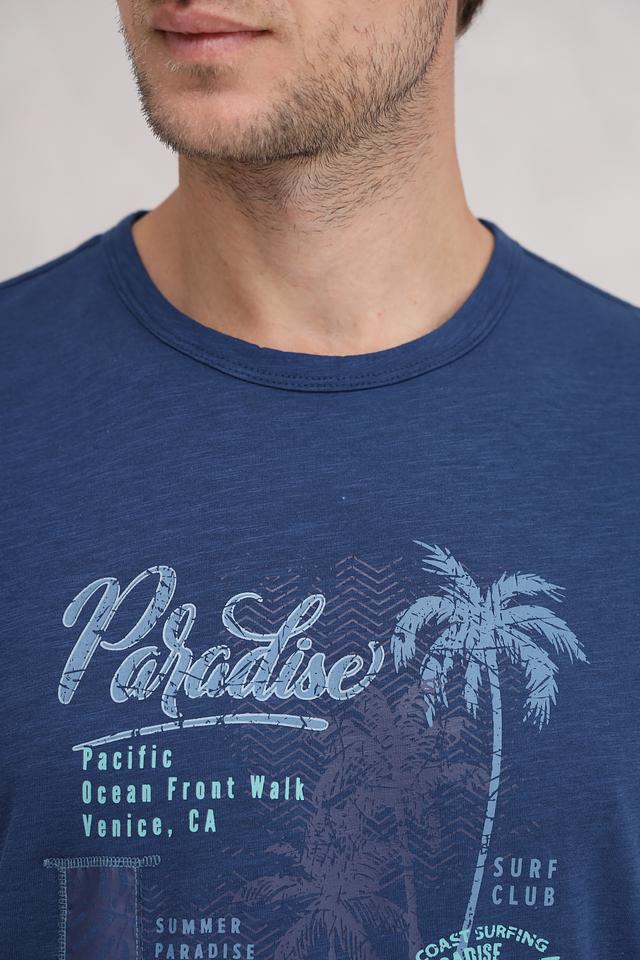 Мужская футболка Sea Barrier выполнена из мягкого и приятного к телу 100% хлопка. Модель синего цвета с оригинальным принтом "Paradise", изображающим пальмы и надписи в пляжном стиле.