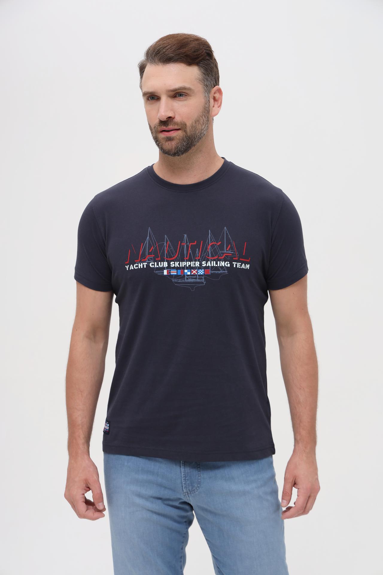Мужская футболка Sea Barrier синяя с принтом яхтенной тематики