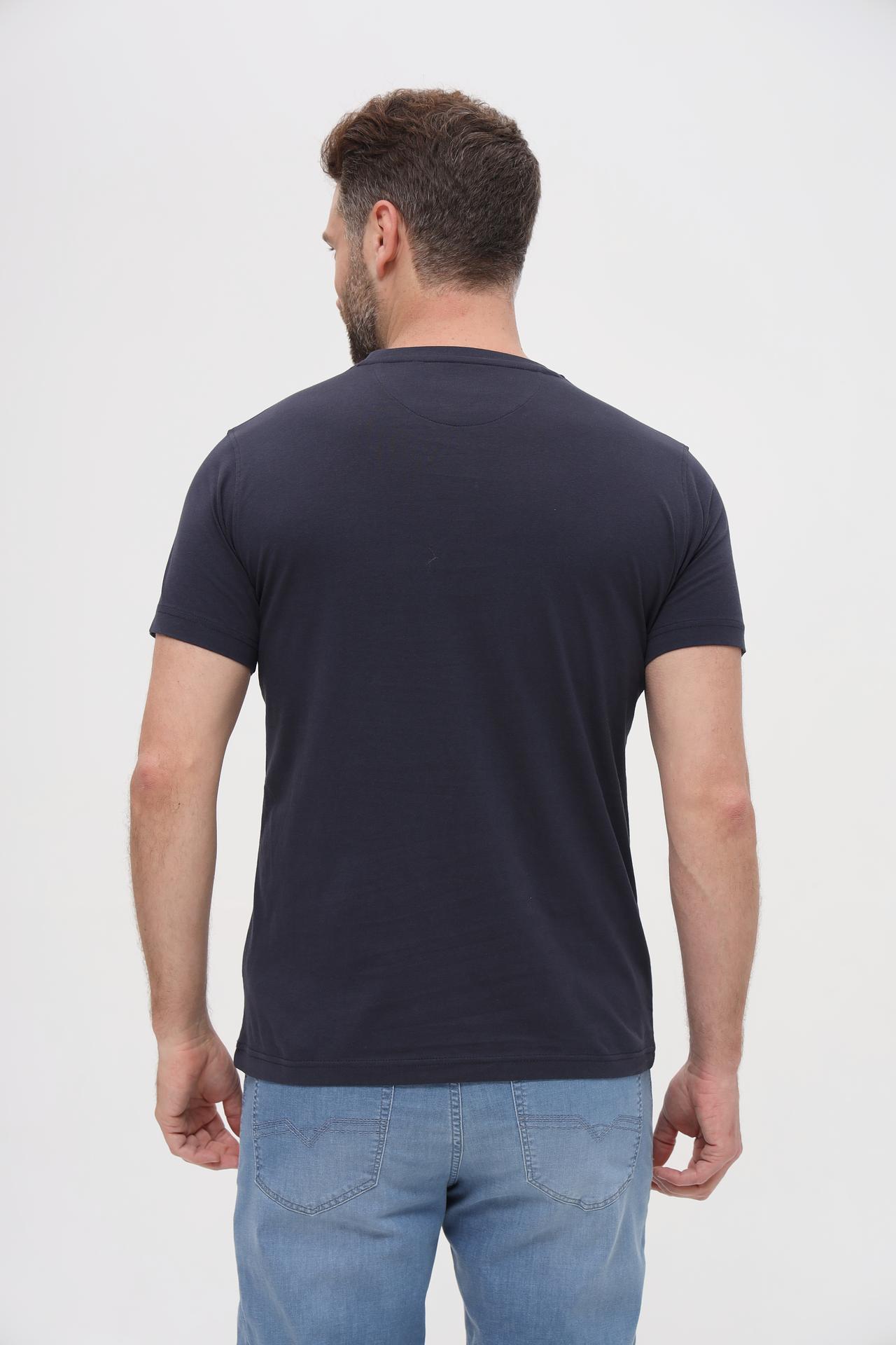 - Универсальность: Классический прямой крой и глубокий тёмно-синий оттенок делают эту футболку базовым элементом мужского гардероба, легко комбинируемым с джинсами, шортами или брюками.