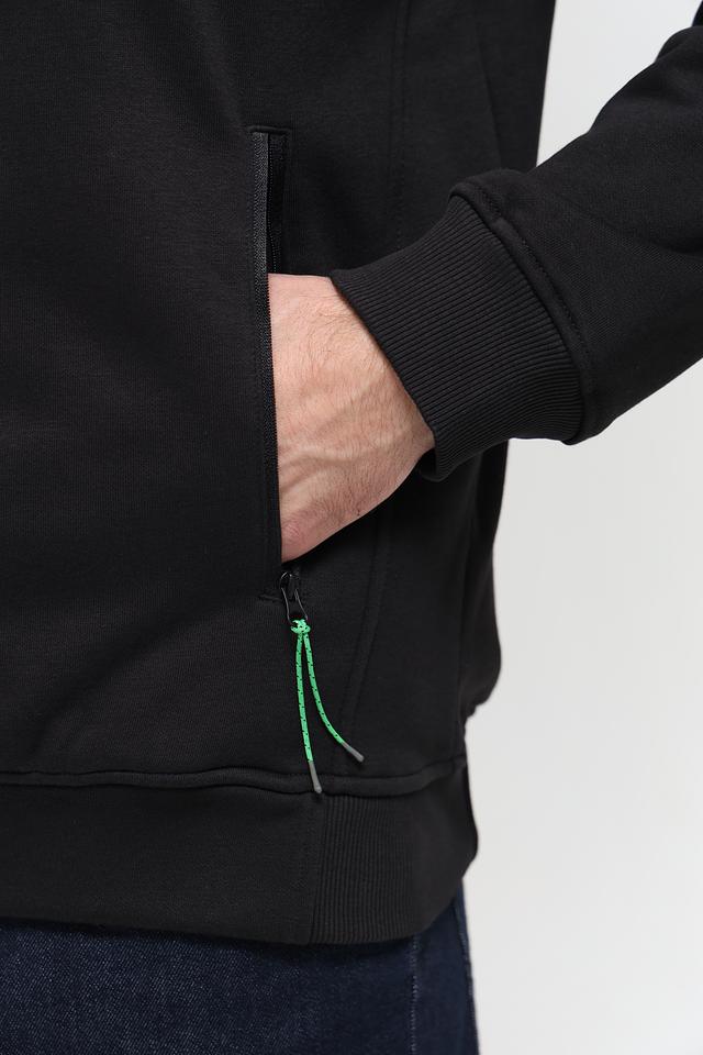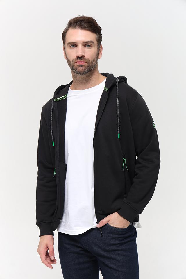 Чёрный кардиган Sea Barrier на молнии – стильная и удобная модель для повседневной носки. Изготовлен из хлопка с добавлением полиэстера, имеет капюшон и боковые карманы. Состав: хлопок 70%, полиэстер 30%