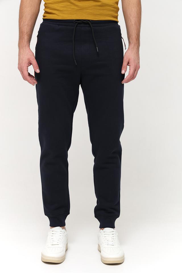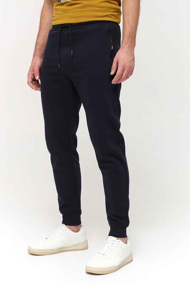 Мужские спортивные брюки Sea Barrier тёмно-синего цвета, выполнены из мягкого хлопка с добавлением полиэстера. Удобная модель с эластичным поясом и манжетами на щиколотках. Состав: хлопок 70%, полиэстер 30%