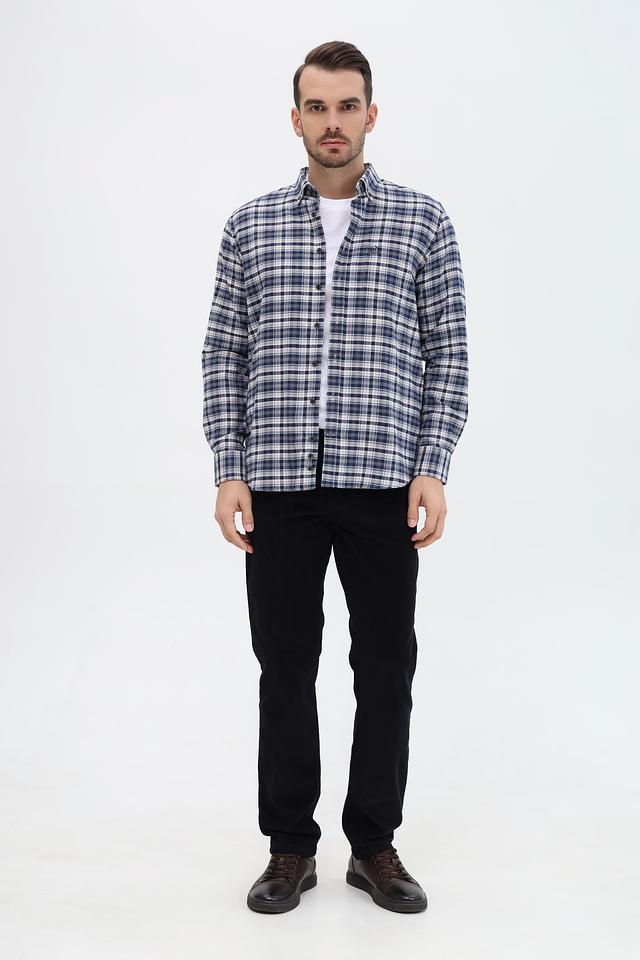 Брюки выполнены в тёмно-синем цвете, который легко сочетается с различными элементами одежды. Состав: 98% хлопок и 2% эластан обеспечивают комфорт при носке и сохраняют форму изделия.