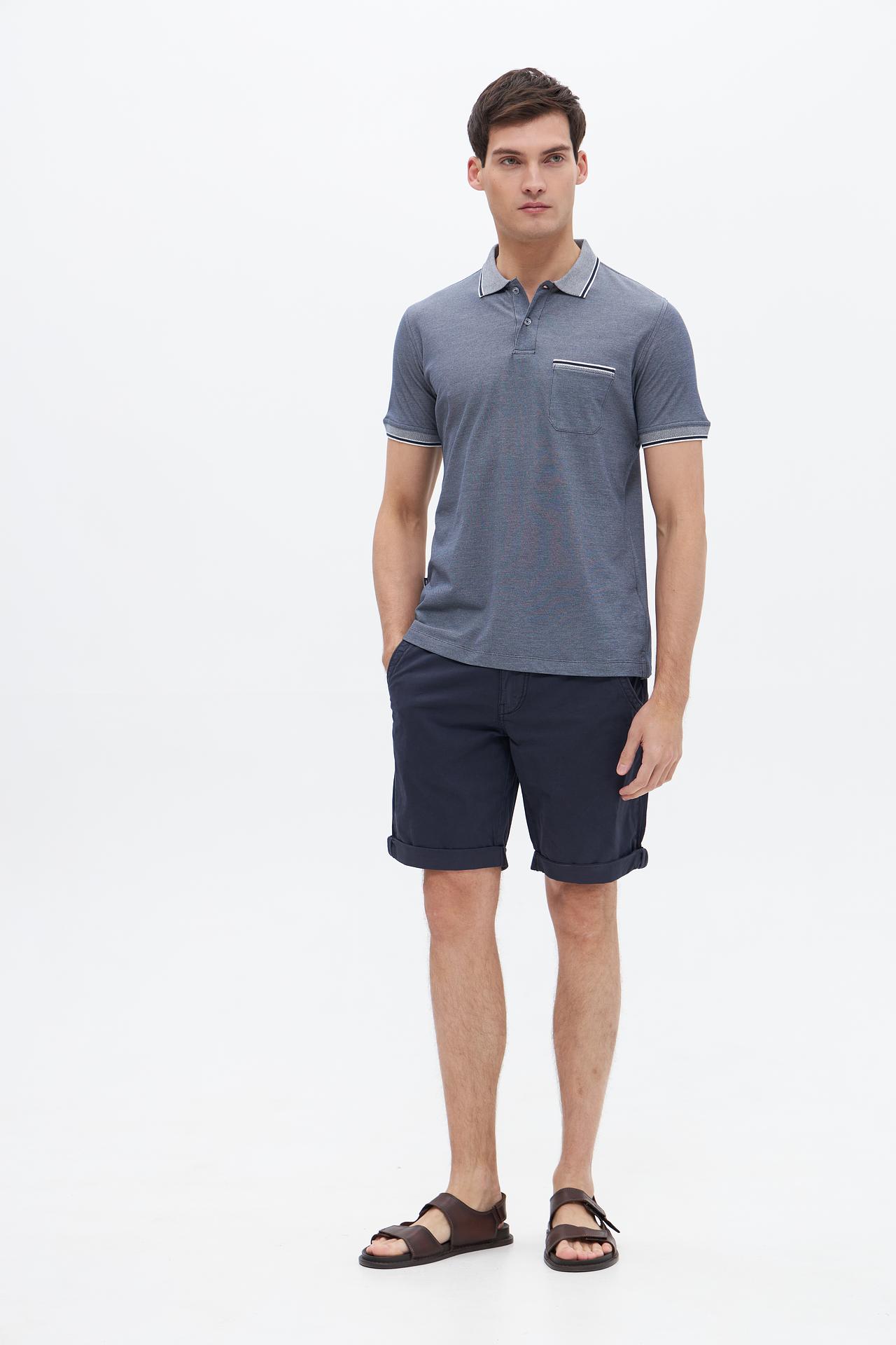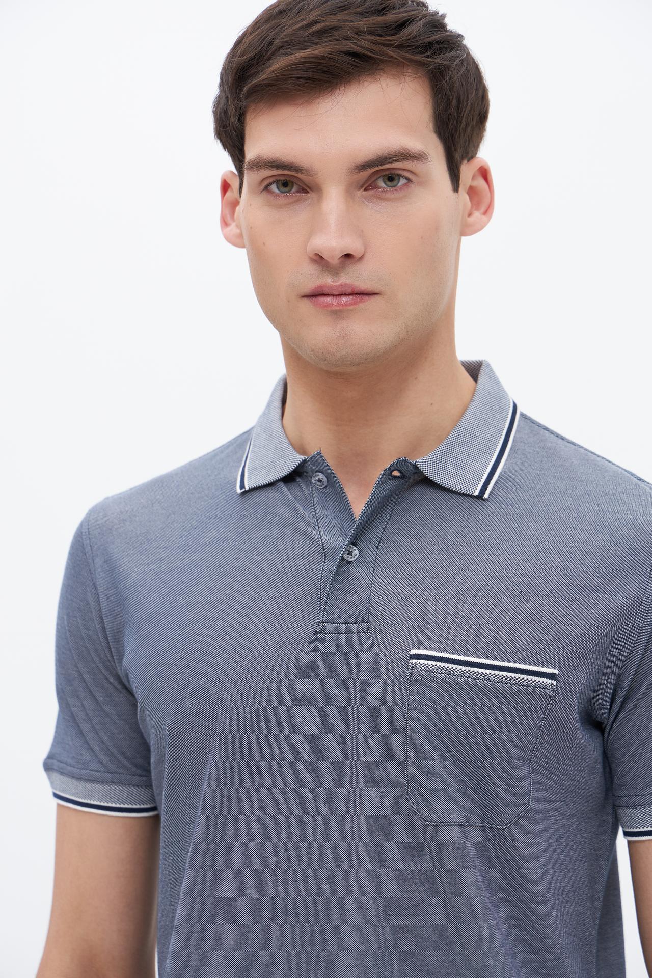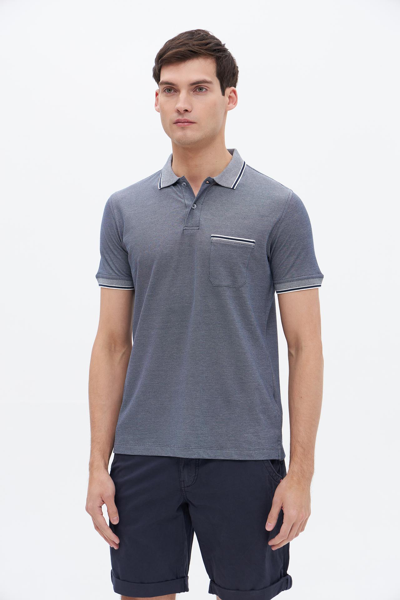 - Дизайн: Классический крой поло с отложным воротником и планкой на пуговицах. Акцентные детали – нагрудный карман с контрастной отделкой и трикотажные манжеты с декоративной полосой.