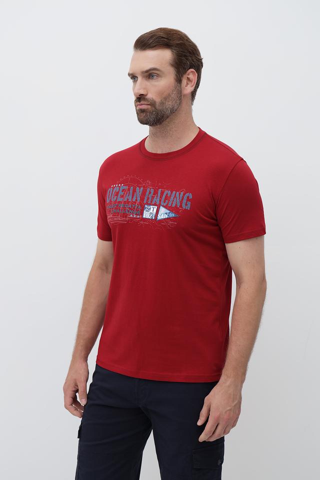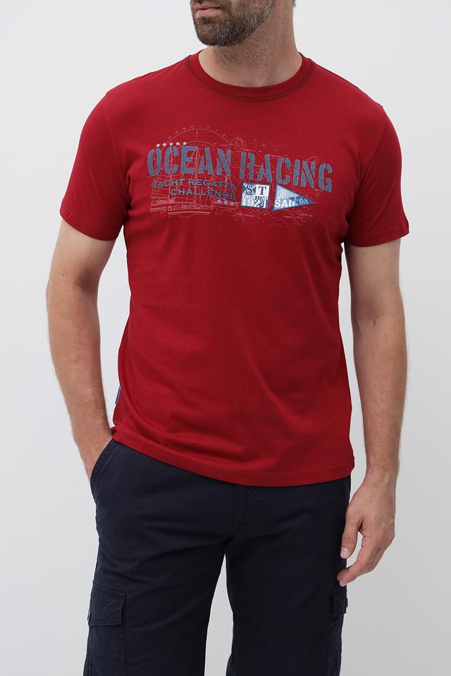 Мужская футболка Sea Barrier красного цвета с ярким принтом "Ocean Racing". Изготовлена из 100% хлопка, обеспечивающего комфорт и воздухопроницаемость. Отличный выбор для повседневной носки. Состав: хлопок 100%