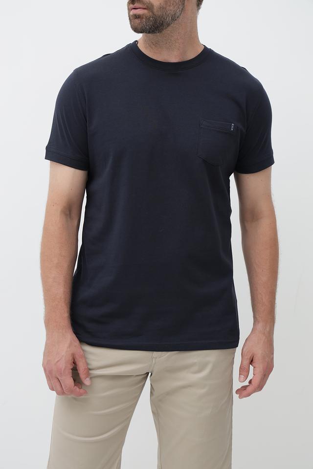 Мужская футболка Sea Barrier темно-синего цвета с коротким рукавом и накладным карманом. Изготовлена из 100% хлопка, обеспечивающего комфорт и воздухопроницаемость. Состав: хлопок 100%