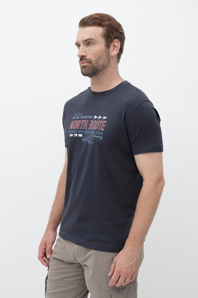 Мужская футболка Sea Barrier тёмно-синего цвета с ярким принтом на груди. Изготовлена из 100% хлопка, обеспечивающего комфорт и воздухопроницаемость. Состав: хлопок 100%