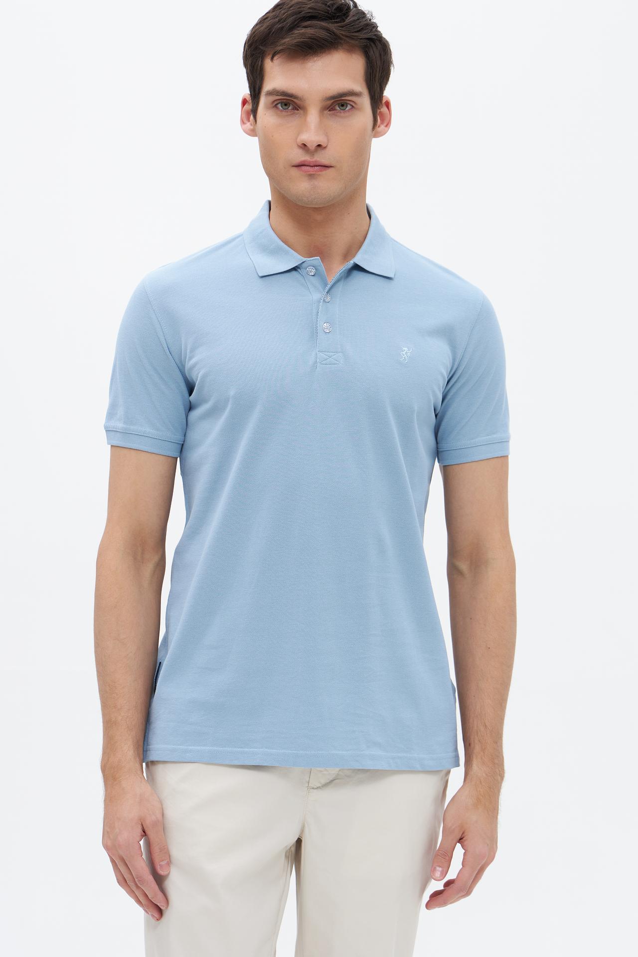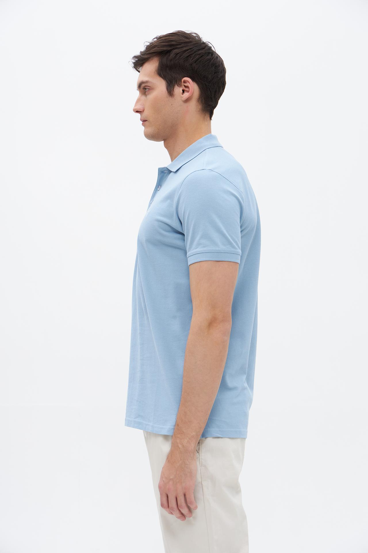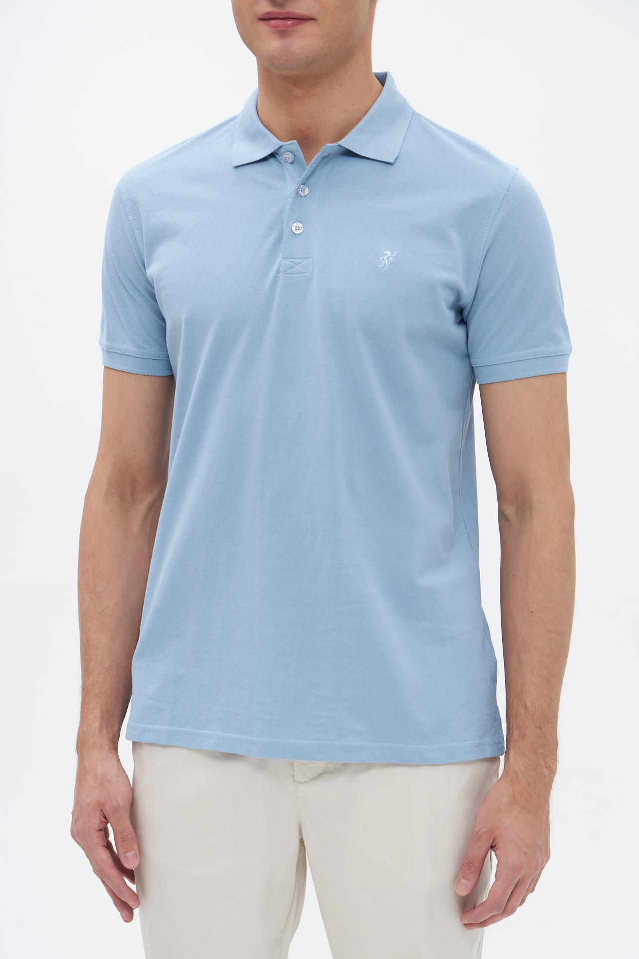 Поло Sea Barrier голубой с вышивкой